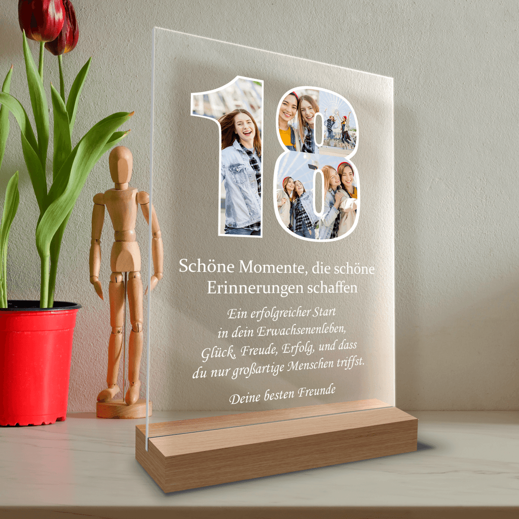 Druck auf Glas, personalisiertes Geschenk zum 18. Geburtstag für Freundin, Freund, Geschenk zum achtzehnten Geburtstag, Geschenkidee zum 18 Geburtstag