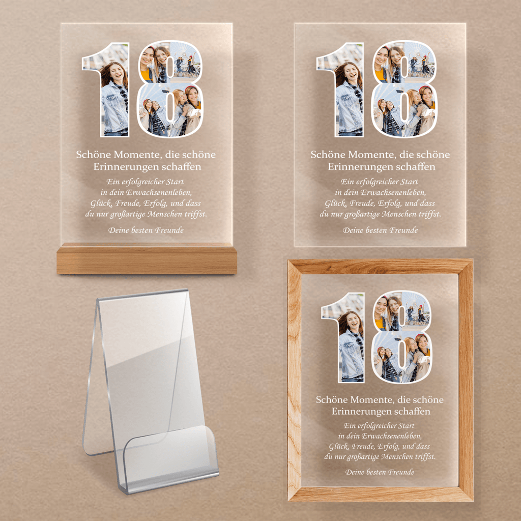 18 Geburtstag - Druck auf Glas, personalisiertes Geschenk