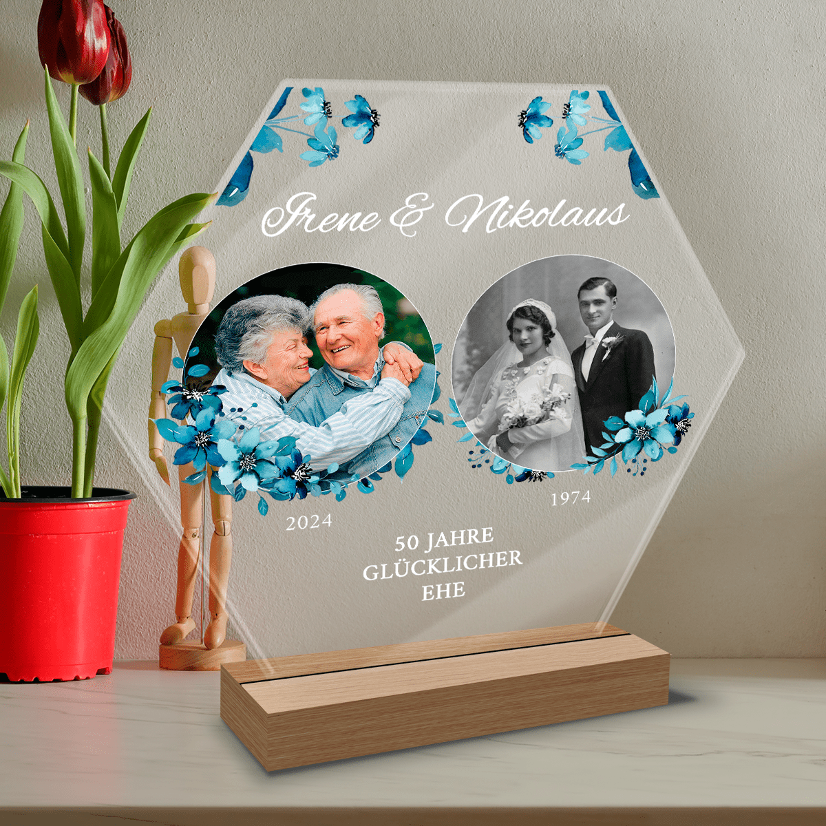 50 Jahre glückliche Ehe - Druck auf Glas, personalisiertes Geschenk für Paar