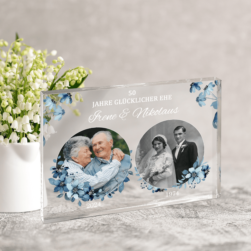 50 Jahre glücklicher Ehe - Druck auf Glas, personalisiertes Geschenk für Paar