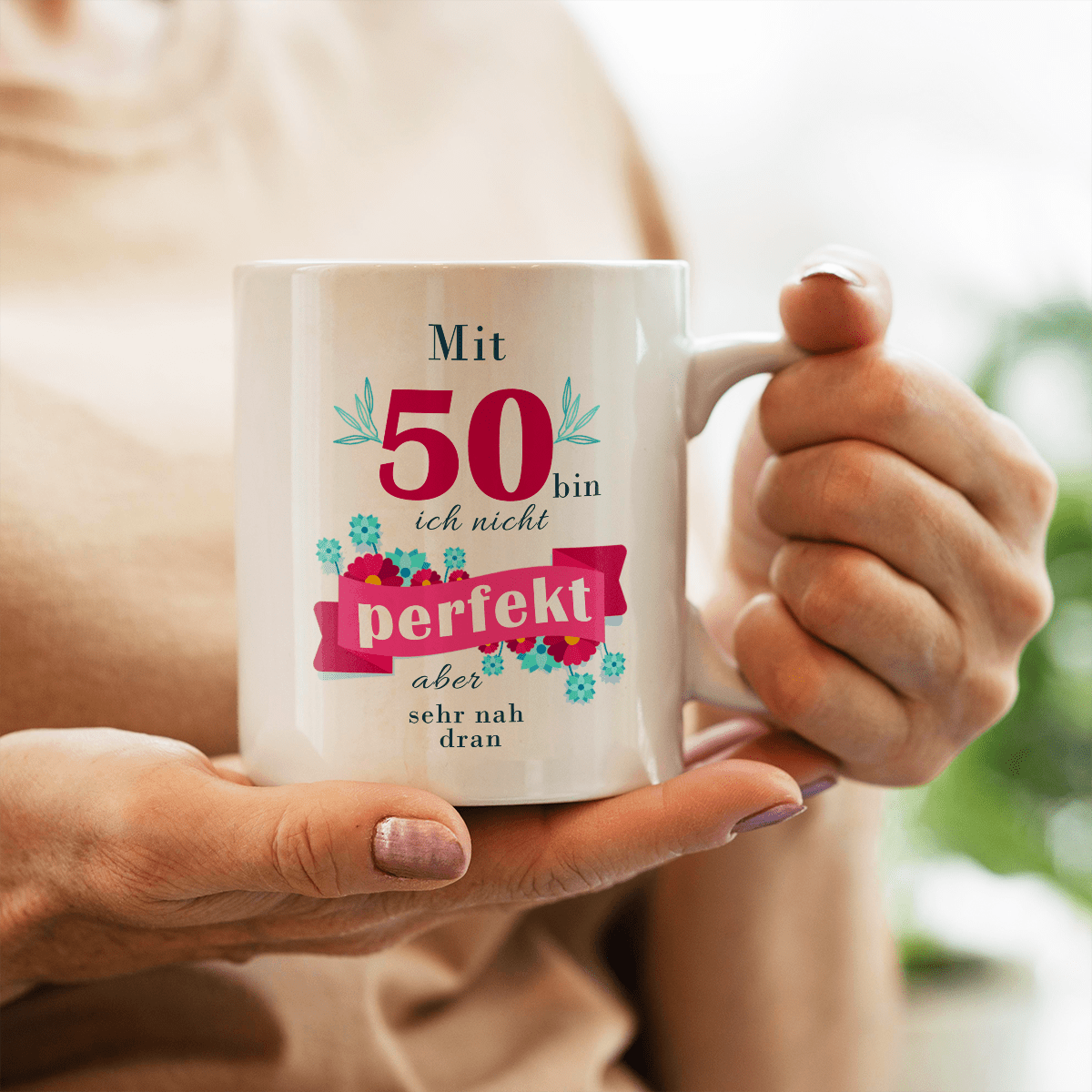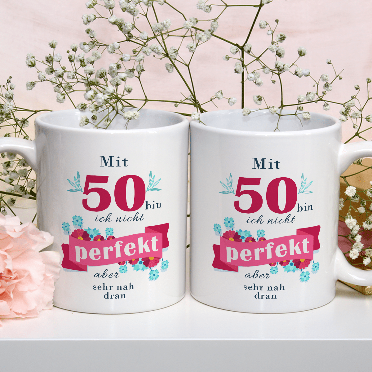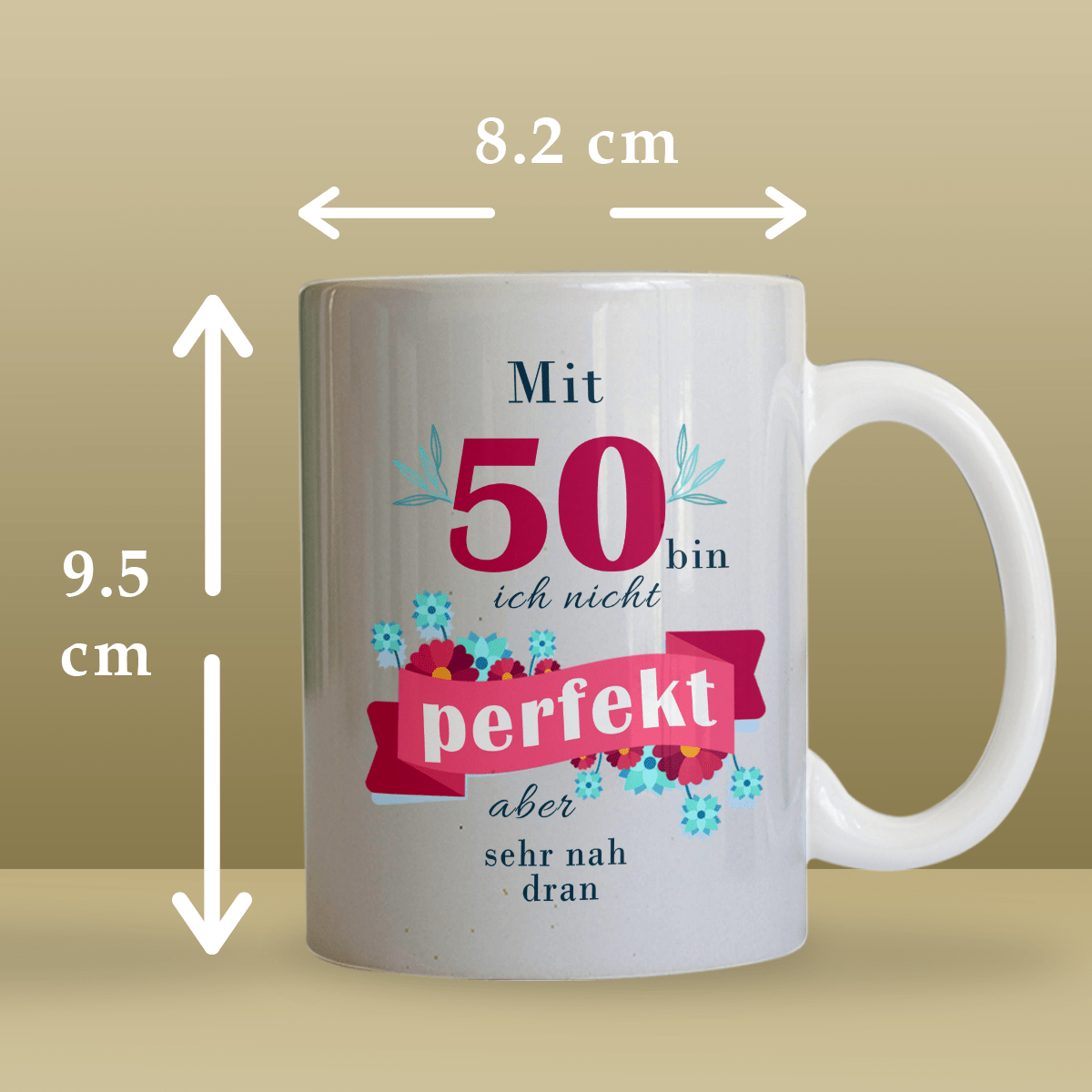 50 perfect - 1x bedruckte Tasse, personalisiertes Geschenk für Frau