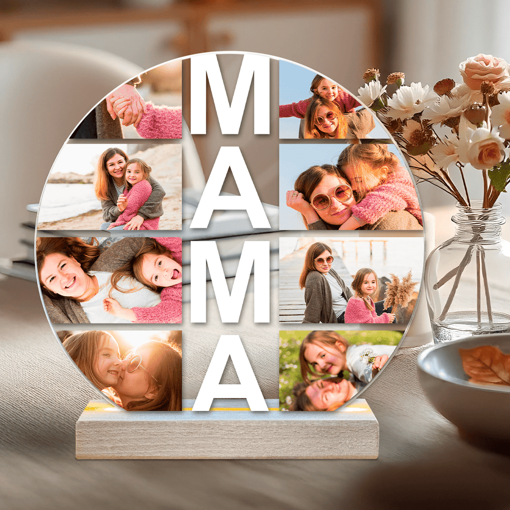 Acht Fotos mit Mama Collage - Druck auf Glas, personalisiertes Geschenk für Mama