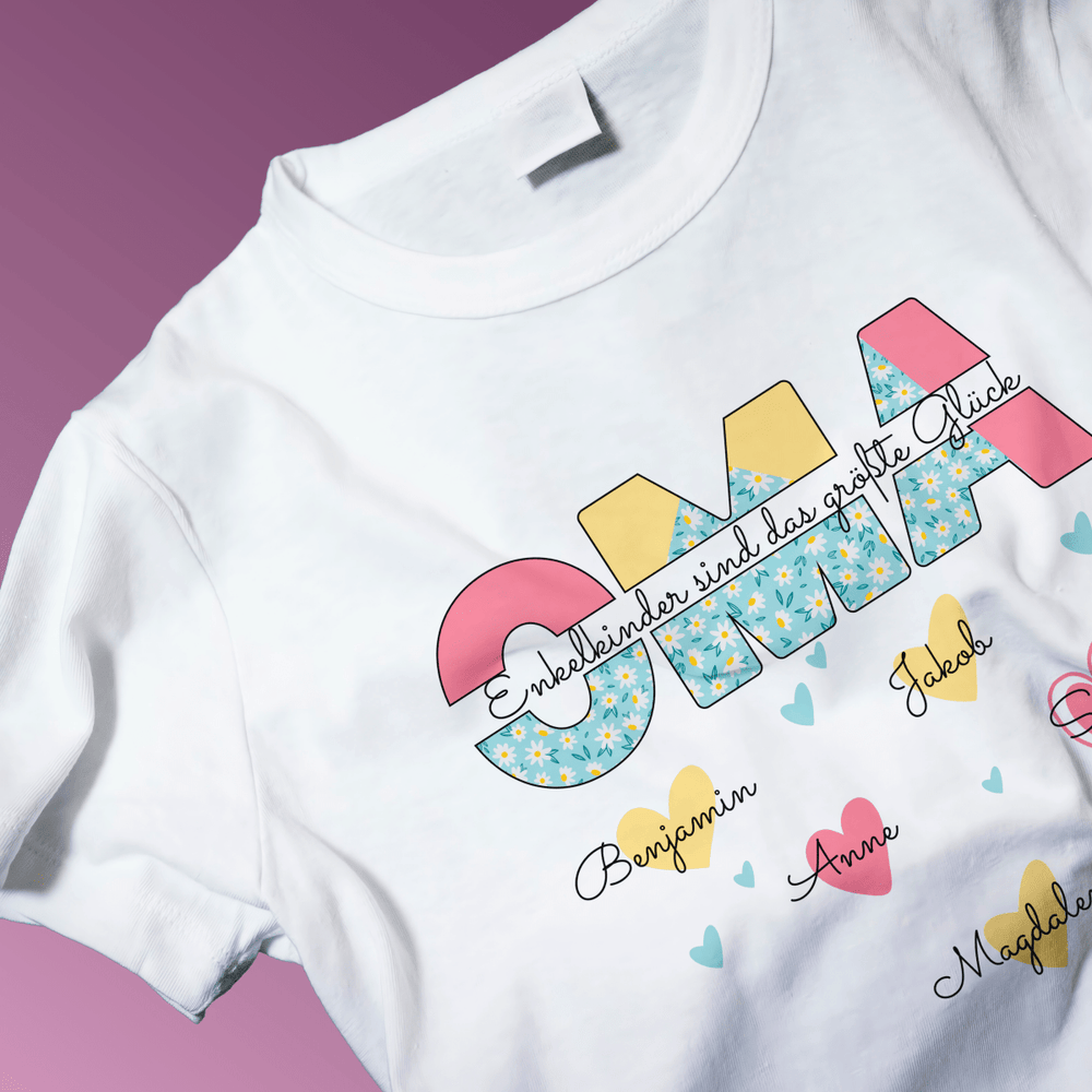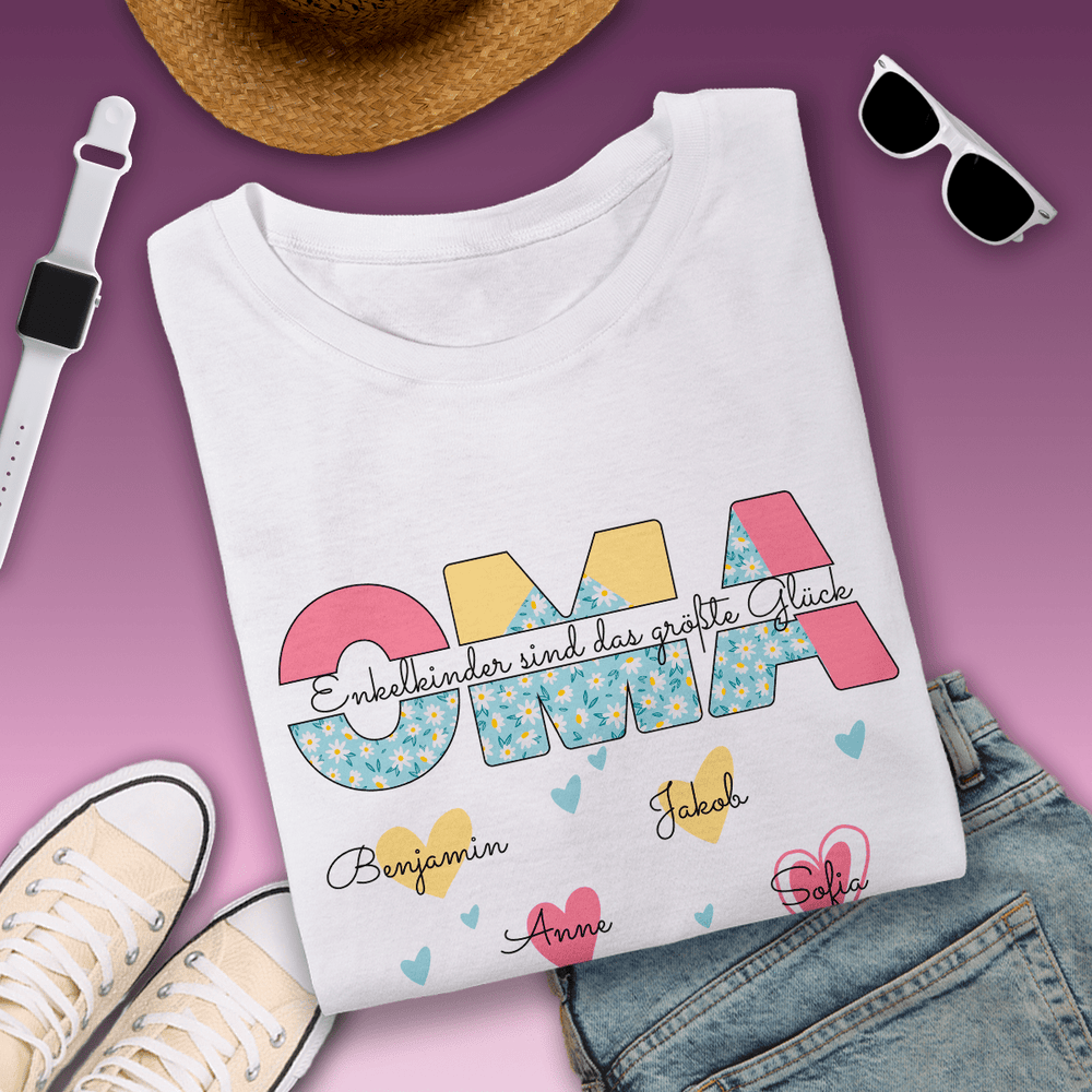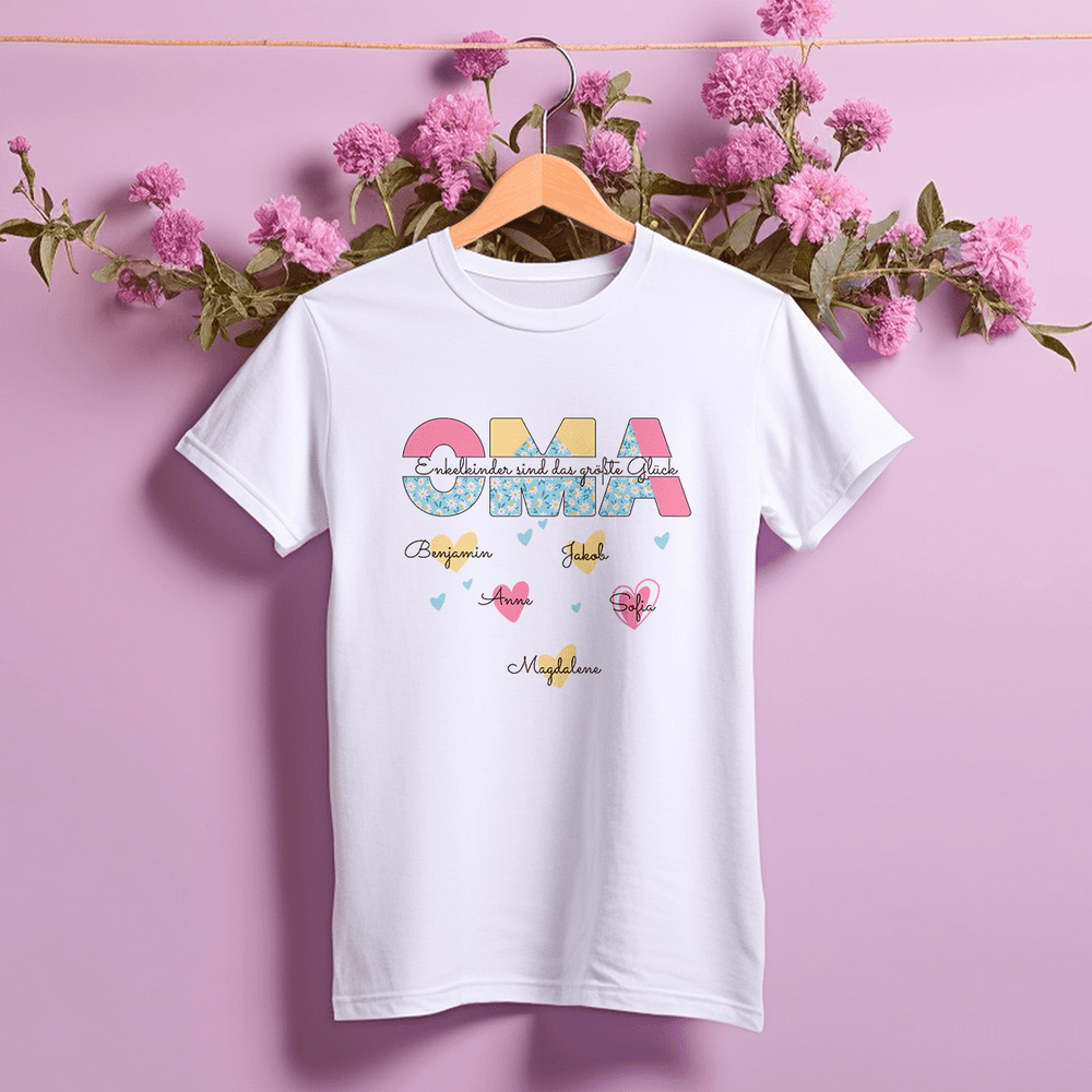 Bedrucktes Damen T-Shirt OMA UND ENKELKINDER - personalisiertes Geschenk für Oma