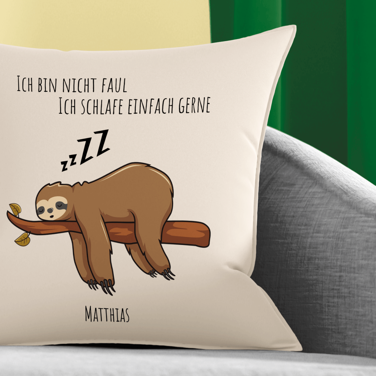 Bedrucktes Kissen FAULTIER - personalisiertes Geschenk für Freund