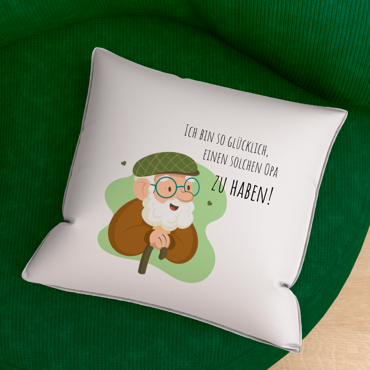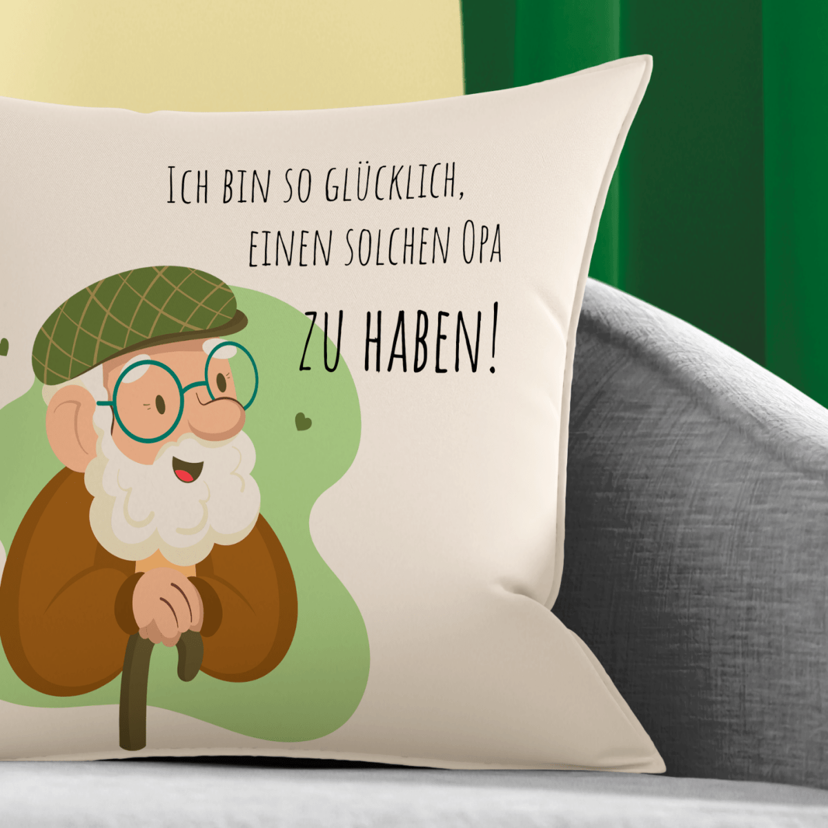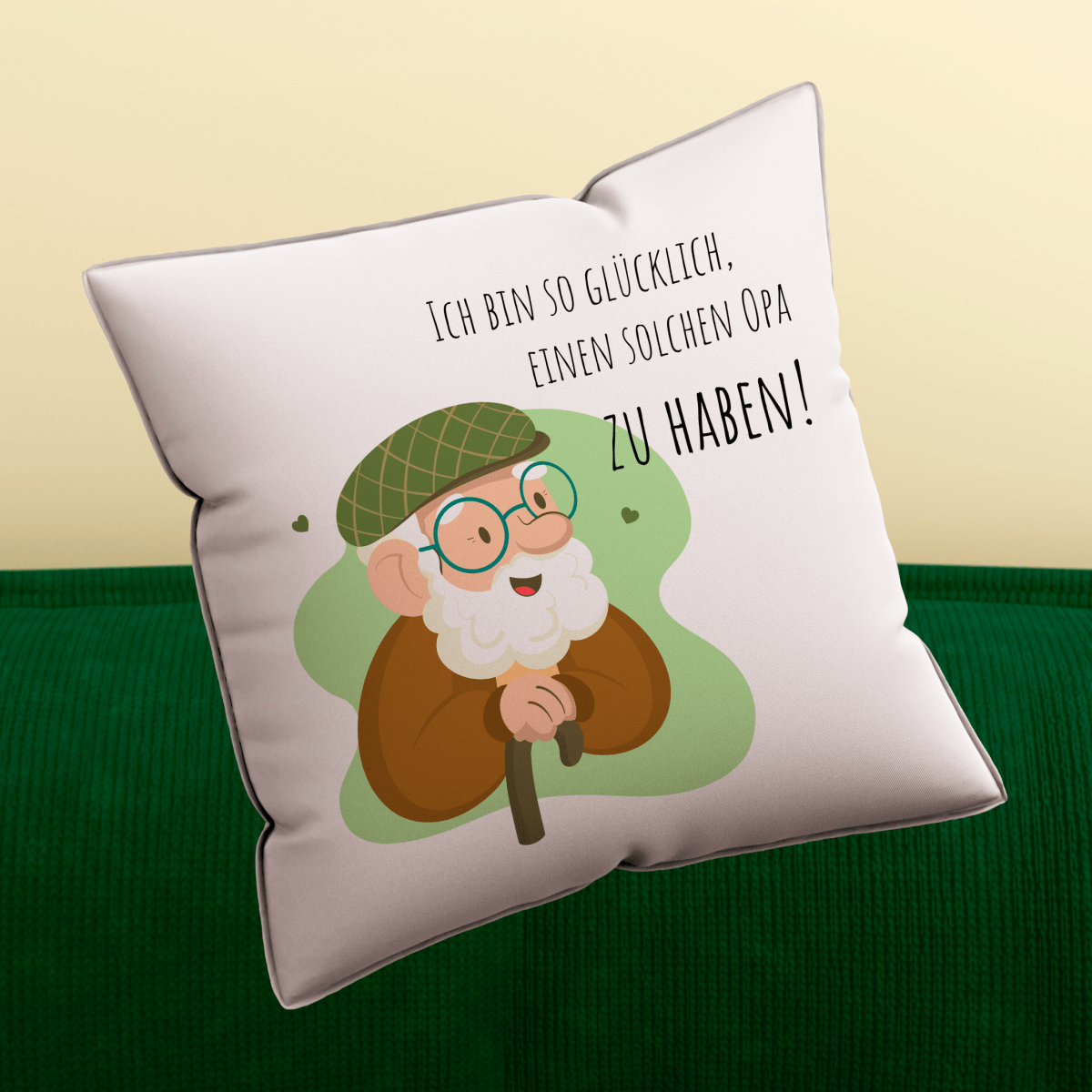 Bedrucktes Kissen ICH BIN SO GLÜCKLICH - personalisiertes Geschenk für Opa