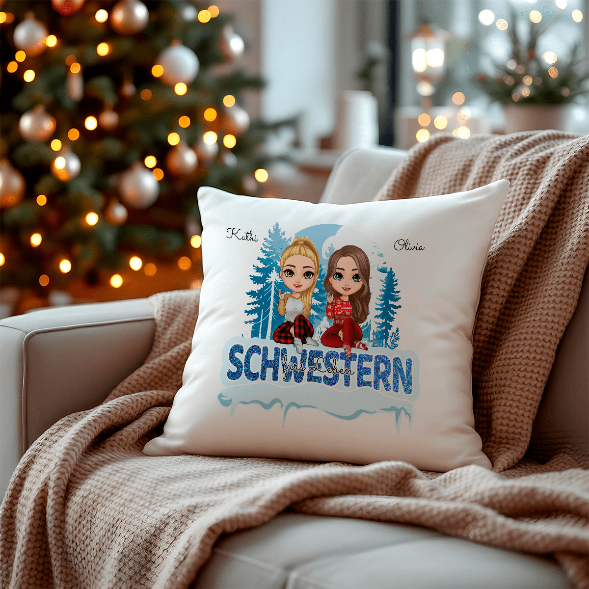 Bedrucktes Kissen SCHWESTERN CLIPART - personalisiertes Geschenk für Schwester
