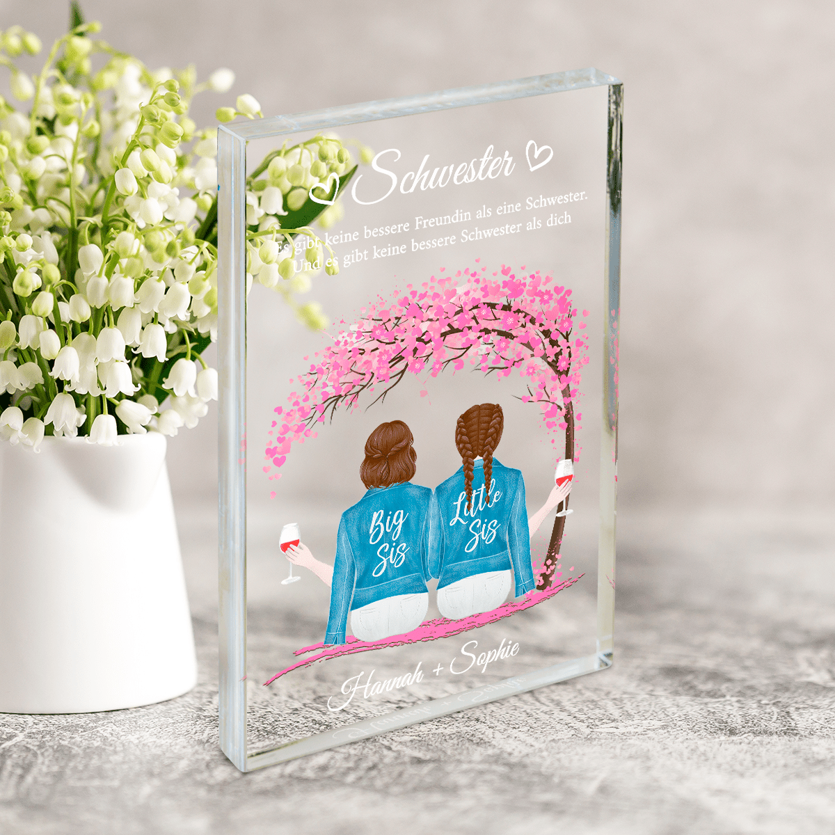 Beste Freundin und Schwester - Druck auf Glas, personalisiertes Geschenk für Schwester