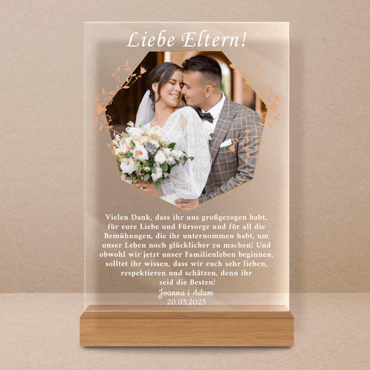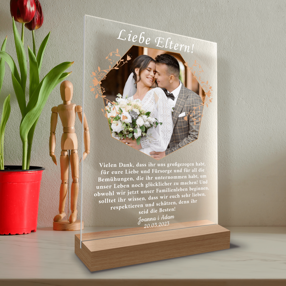Druck auf Glas, personalisiertes Geschenk für Eltern, Geschenk zur Hochzeit, Elterngeschenk, Eltern Geschenkideen, Hochzeitsgeschenk für Eltern