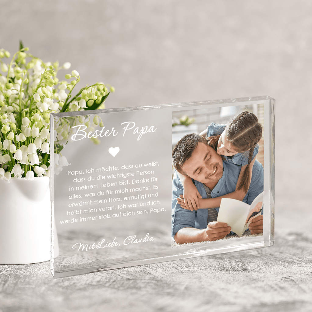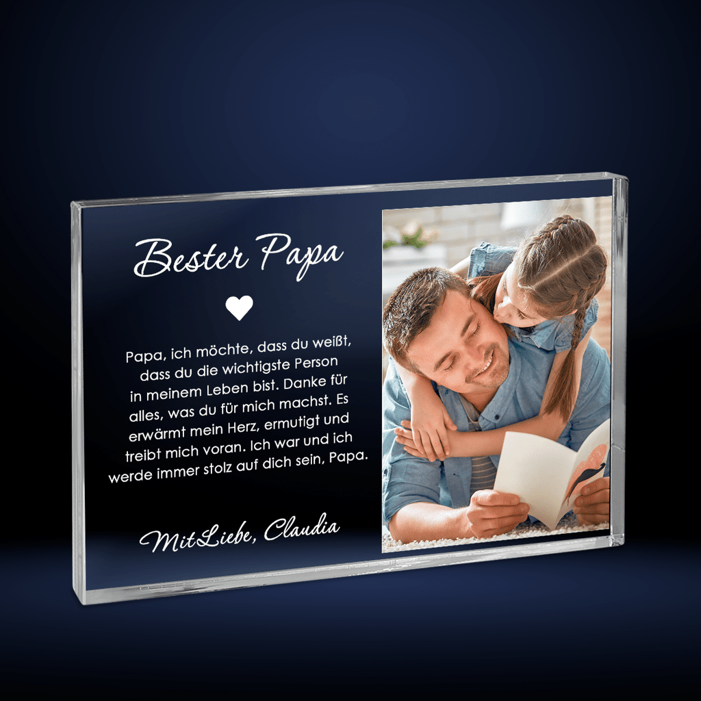 Bester Papa Text + Foto - Druck auf Glas, personalisiertes Geschenk für Papa