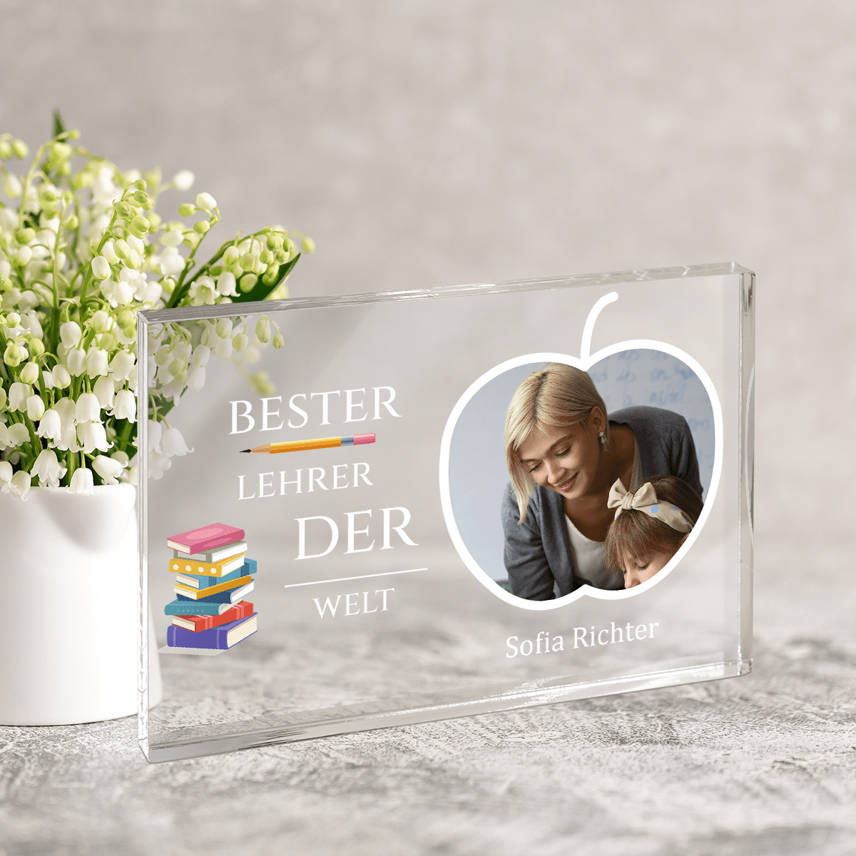 Bestes Lehrerfoto + Text - Druck auf Glas, personalisiertes Geschenk für Lehrer