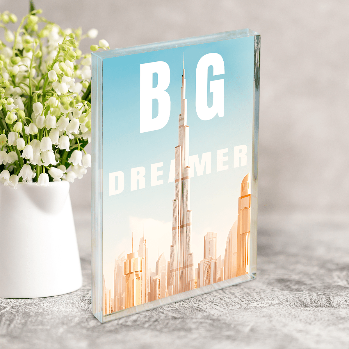 Wir drucken auf Acrylglas (Plexiglas) mit einer Dicke von 15 mm, das sicherer und langlebiger ist als gewöhnliches Glas.