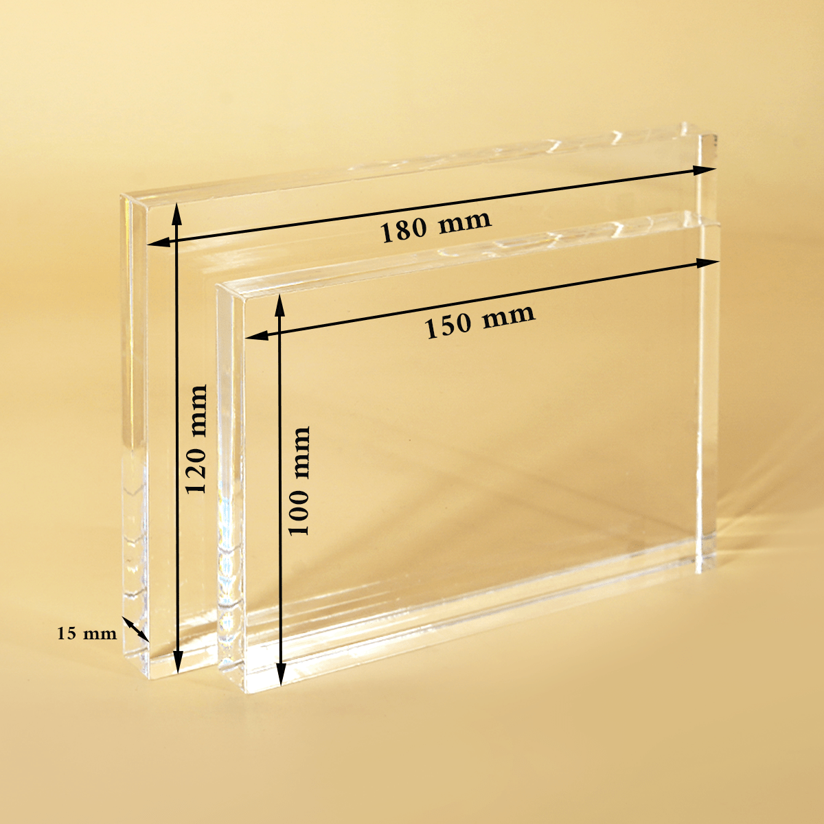 Wir drucken auf Acrylglas (Plexiglas) mit einer Dicke von 15 mm, das sicherer und langlebiger ist als gewöhnliches Glas.