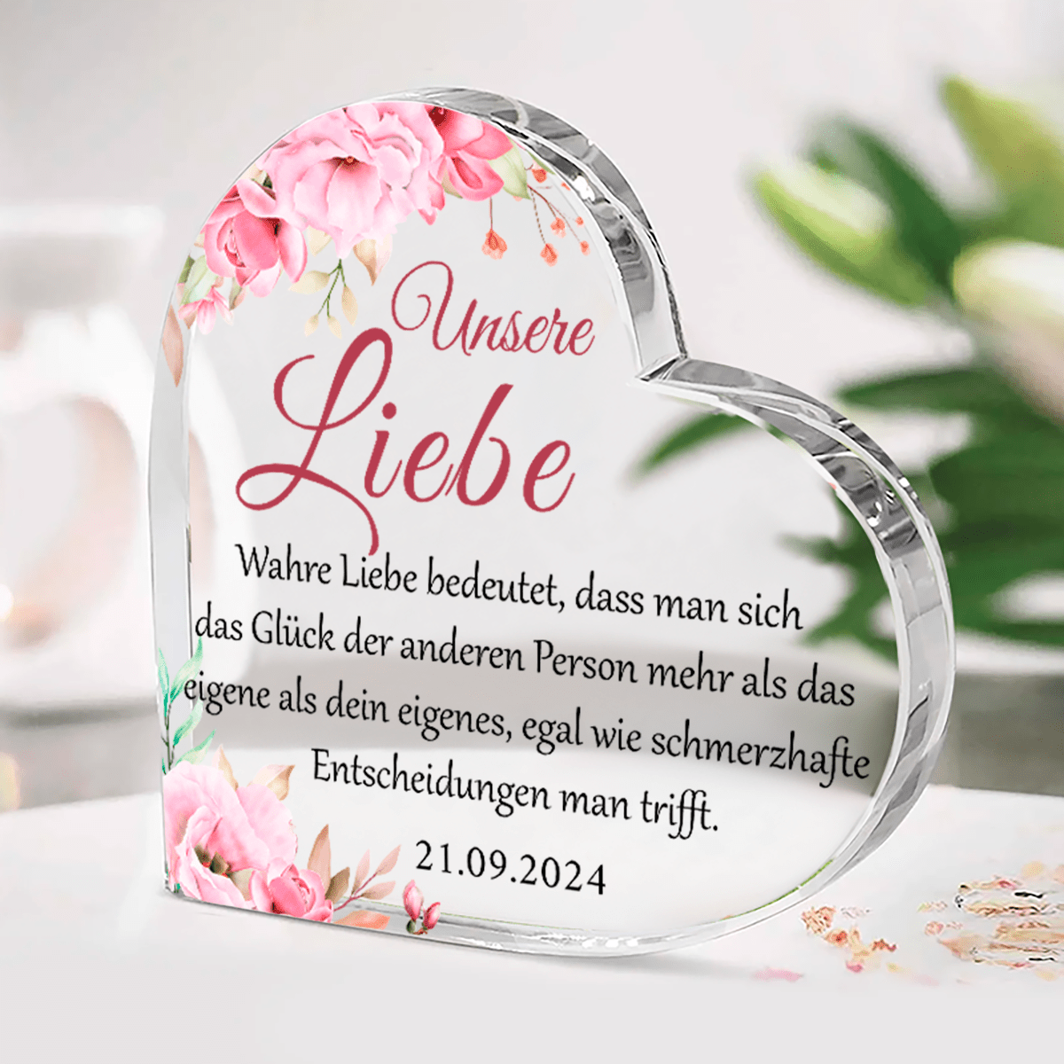Herz aus Glas, personalisiertes Geschenk für sie, Freundin, Verlobte, Ehefrau, Geschenk zum Valentinstag, originelle Geschenke, Geschenkidee
