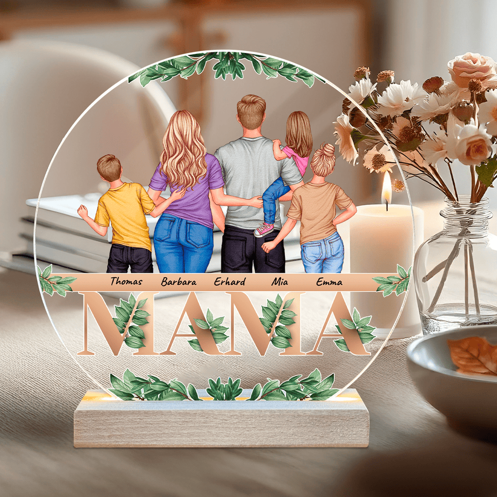 Clipart Familie + MAMA Schriftzug - Druck auf Glas, personalisiertes Geschenk für Mama