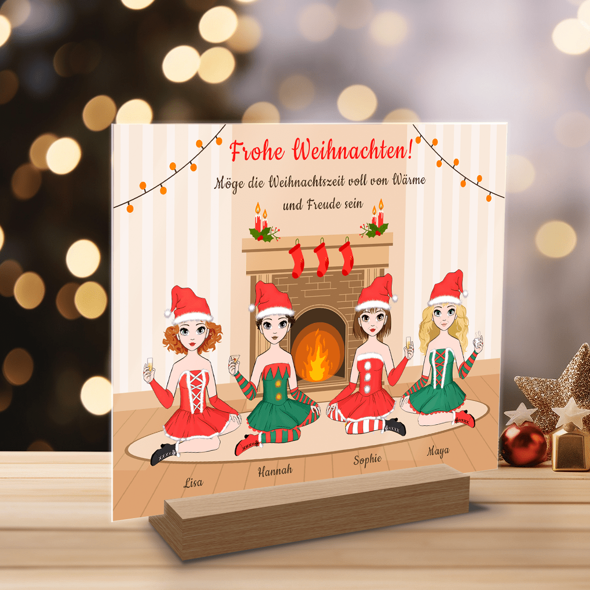 Clipart von Freunden zu Weihnachten - Druck auf Glas, personalisiertes Geschenk für Freundinnen