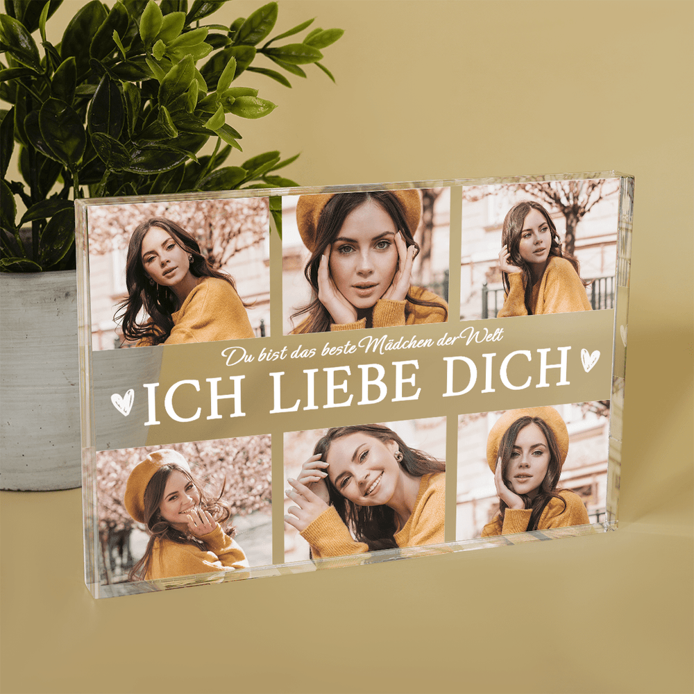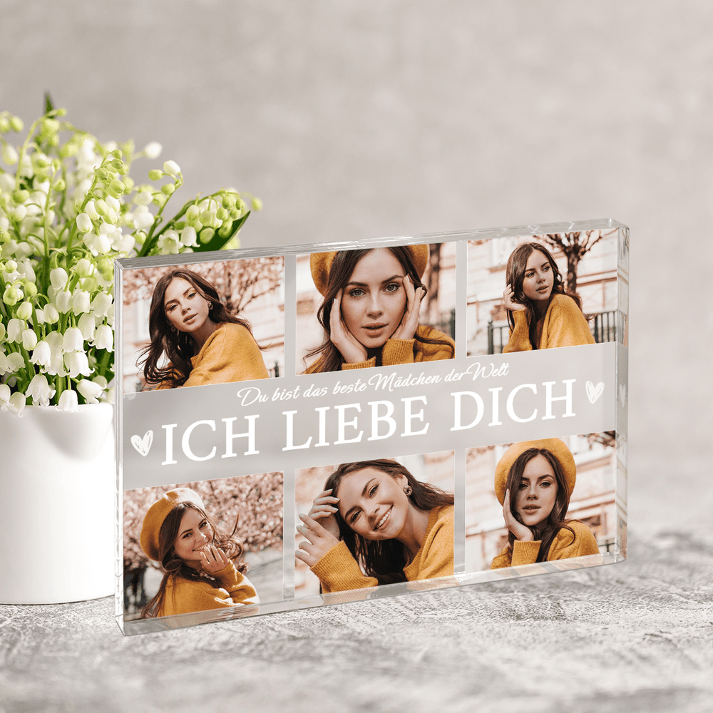 Collage 6 Fotos ICH LIEBE DICH - Druck auf Glas, personalisiertes Geschenk für Frau