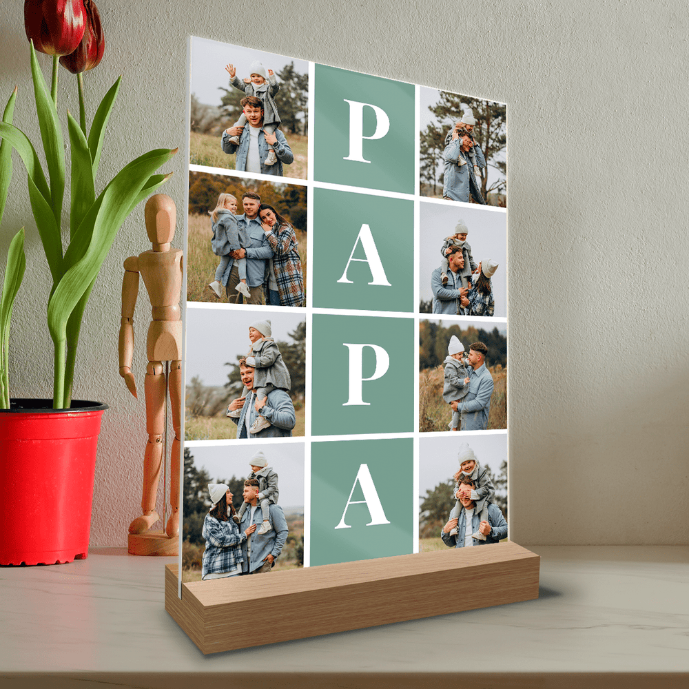 Collage + Aufschrift PAPA - Druck auf Glas, personalisiertes Geschenk für Papa