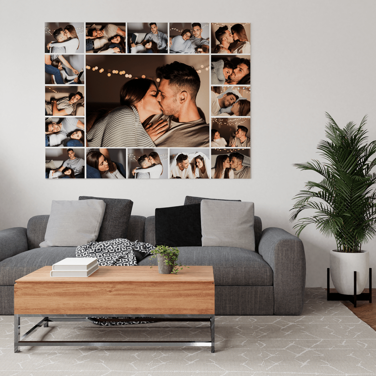 Collage aus 17 romantischen Fotos - Druck auf Leinwand, personalisiertes Geschenk für Paar