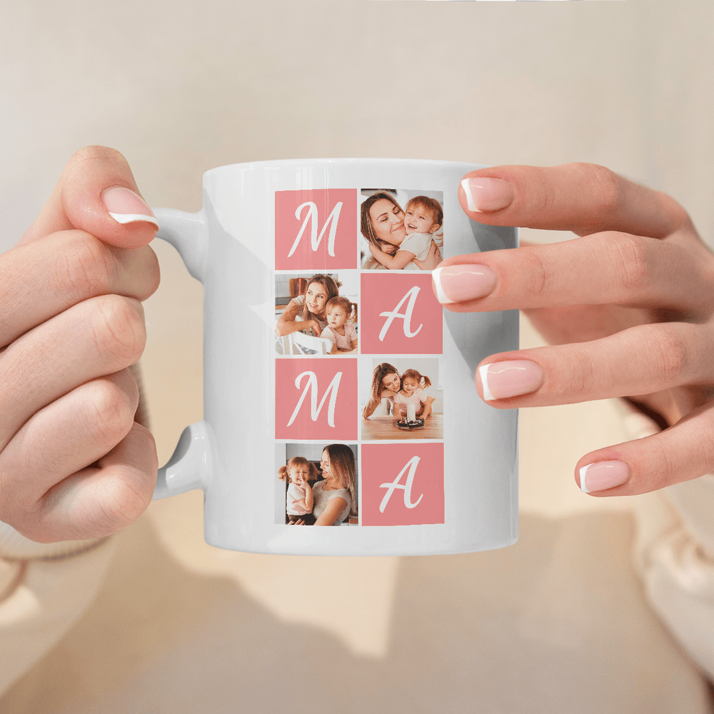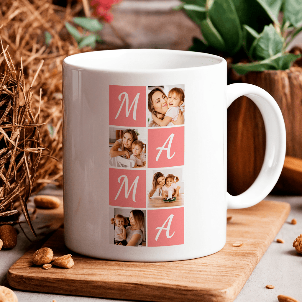 Collage aus 4 Fotos + Text - 1x bedruckte Tasse, personalisiertes Geschenk für Mama