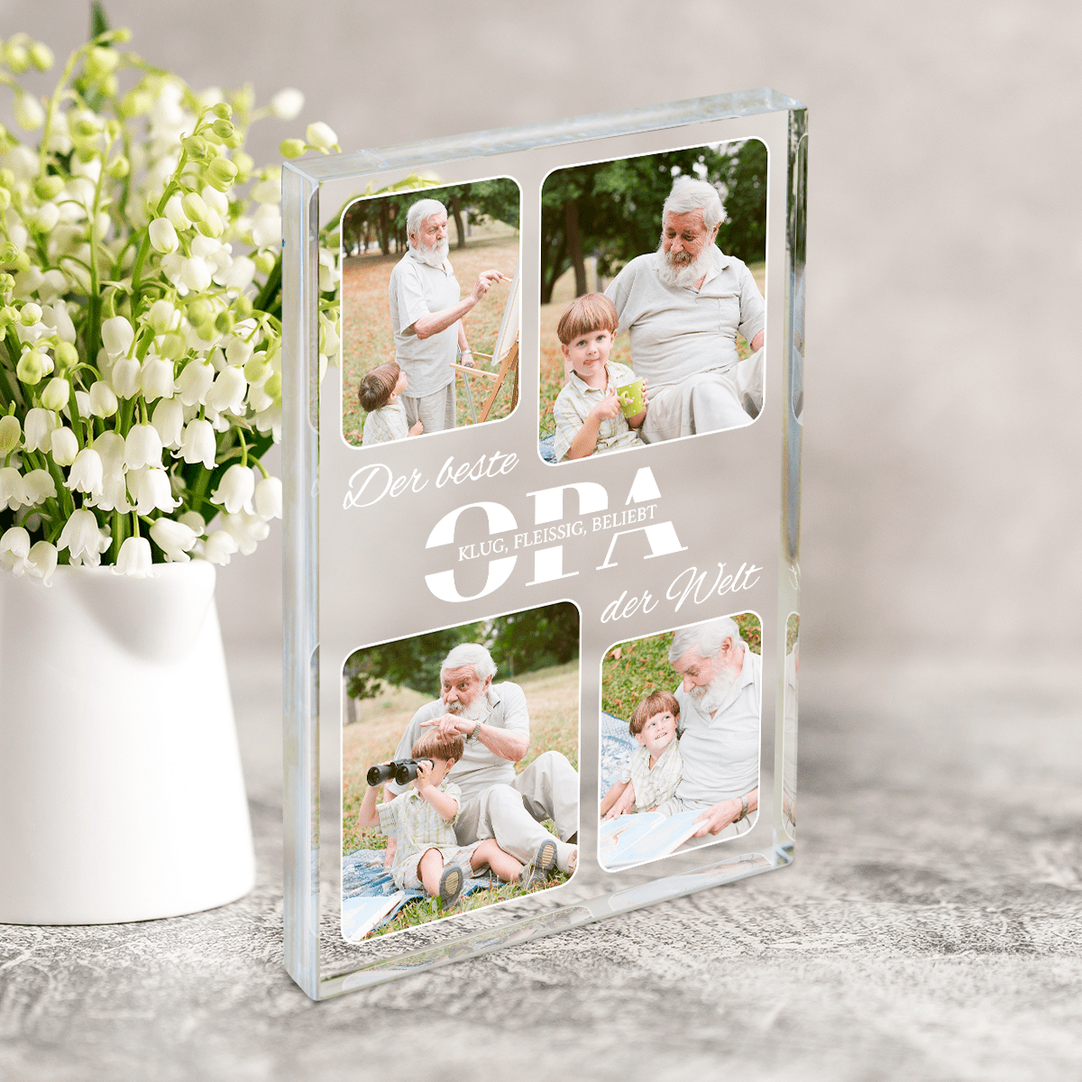 Collage aus 4 Fotos von Enkelkind und Großvater - Druck auf Glas, personalisiertes Geschenk für Opa