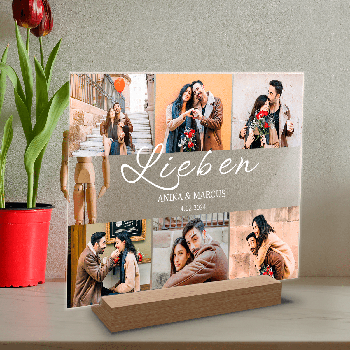 Collage aus 6 Fotos für ein Paar - Druck auf Glas, personalisiertes Geschenk für ein Paar