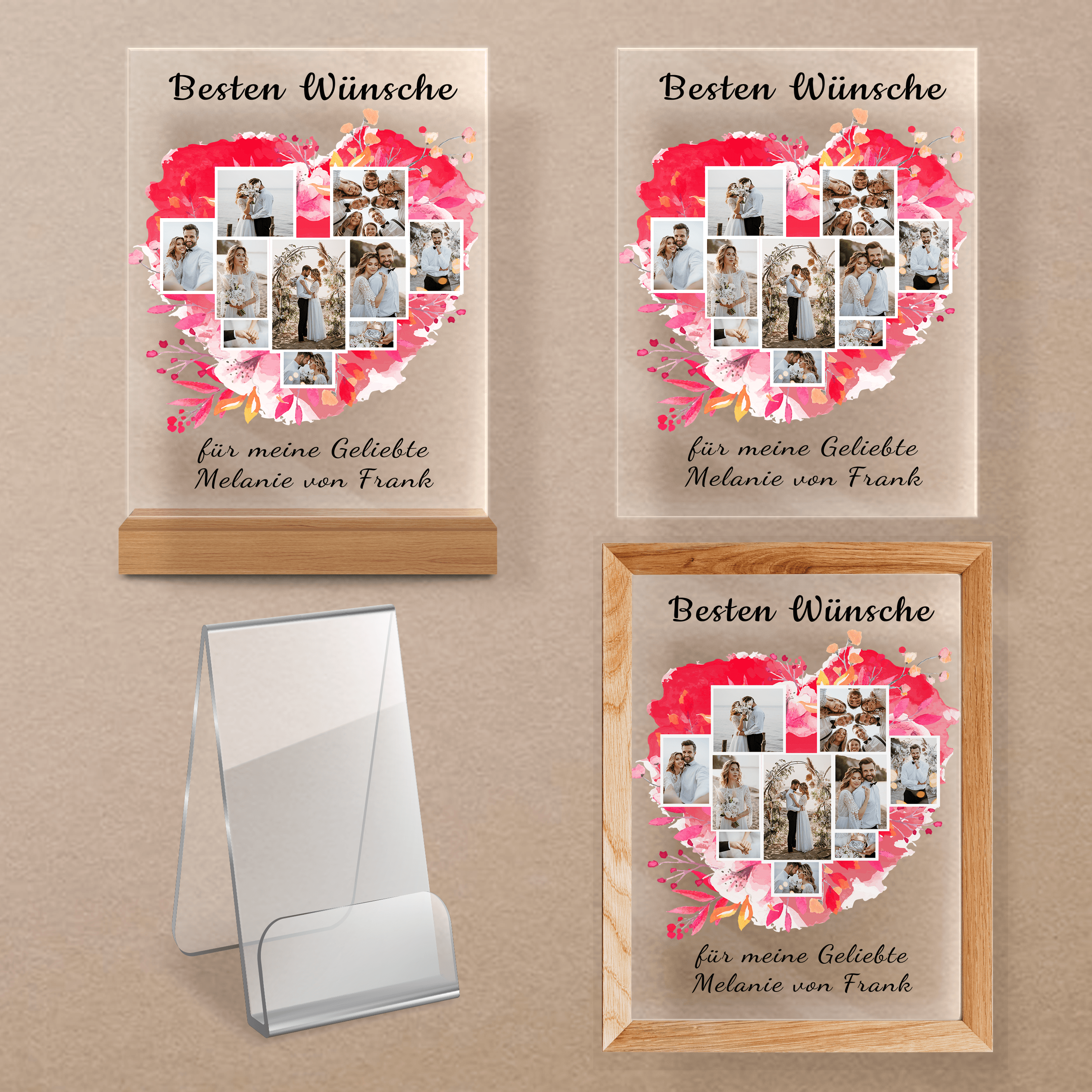 Collage Besten Wünsche - Druck auf Glas, personalisiertes Geschenk