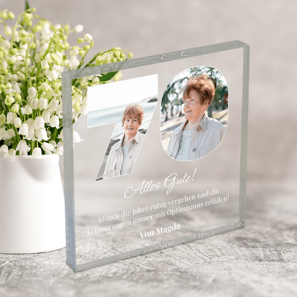 Quadratisches Acrylglas, personalisiertes Geschenk für Frau, Mama, Oma, Ehefrau, Geschenk zum 70. Geburtstag, Geburtstagsgeschenk, Geschenkideen