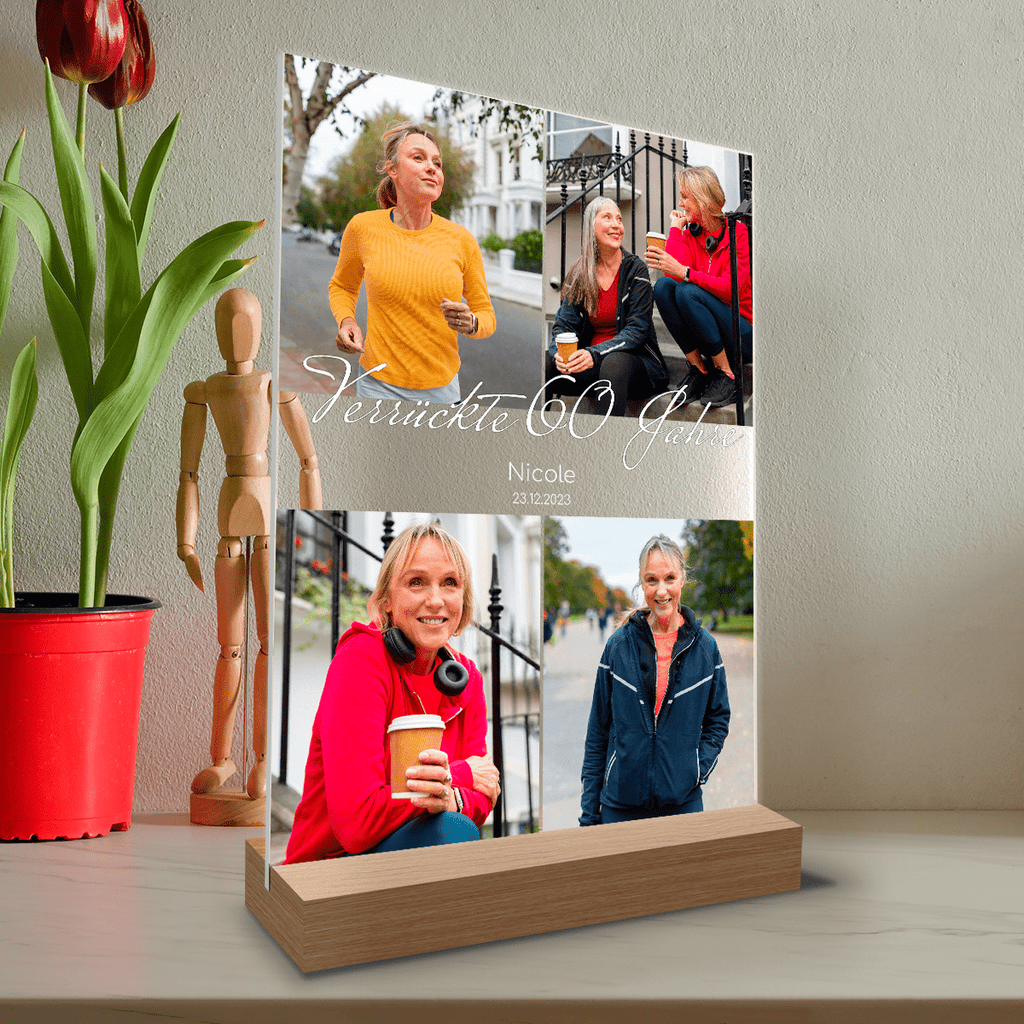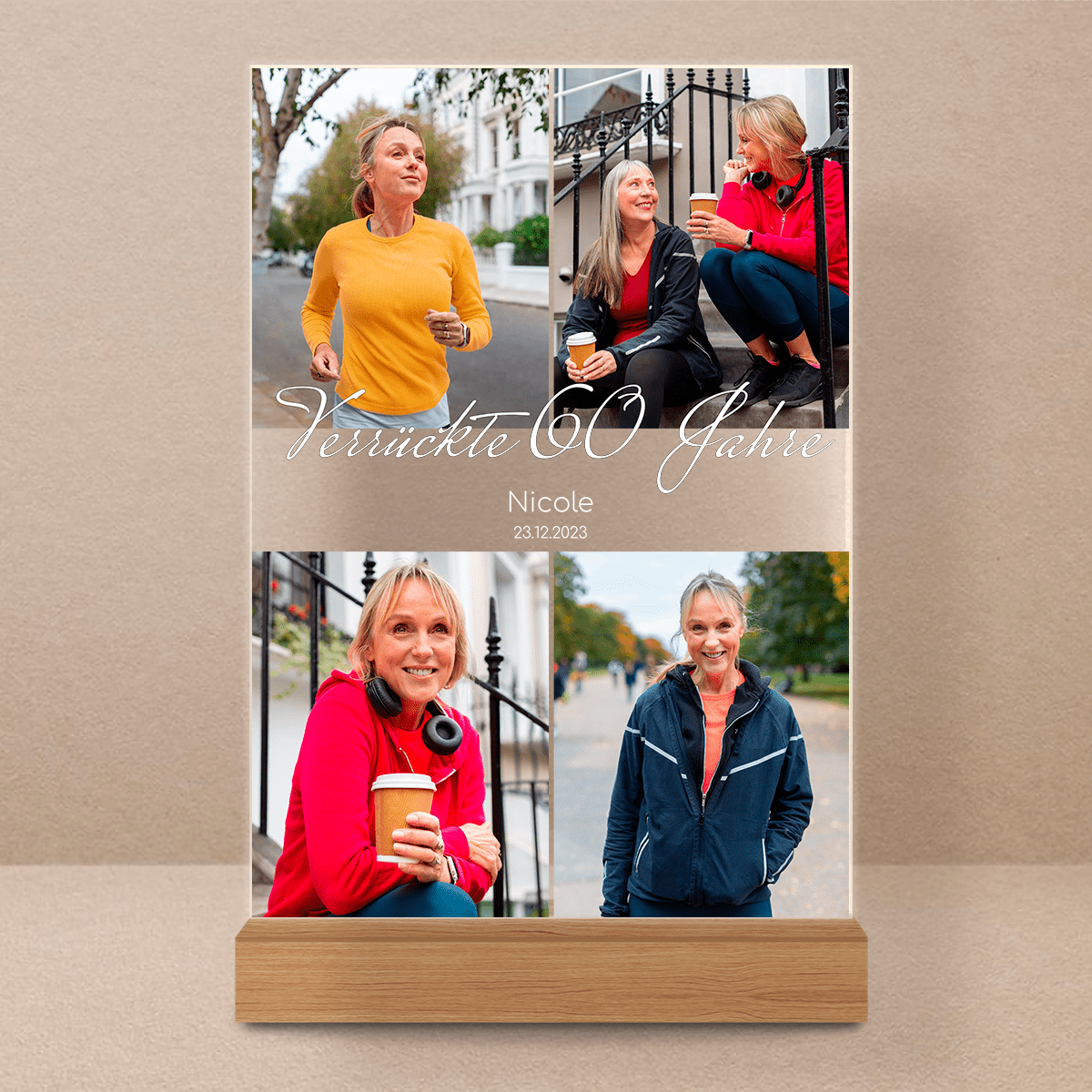 Deine verrückten 60 Jahre - Druck auf Glas, personalisiertes Geschenk für Frau