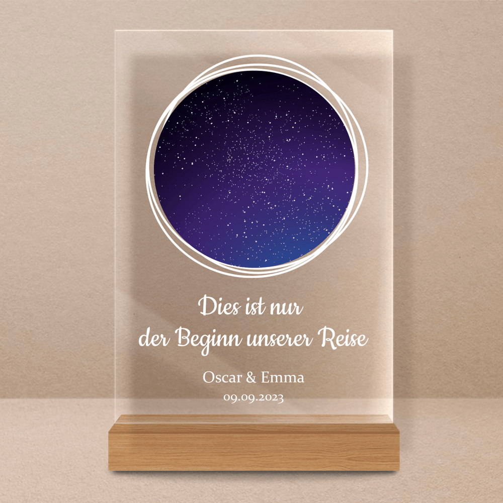 Der Beginn unserer Reise - Druck auf Glas, personalisiertes Geschenk