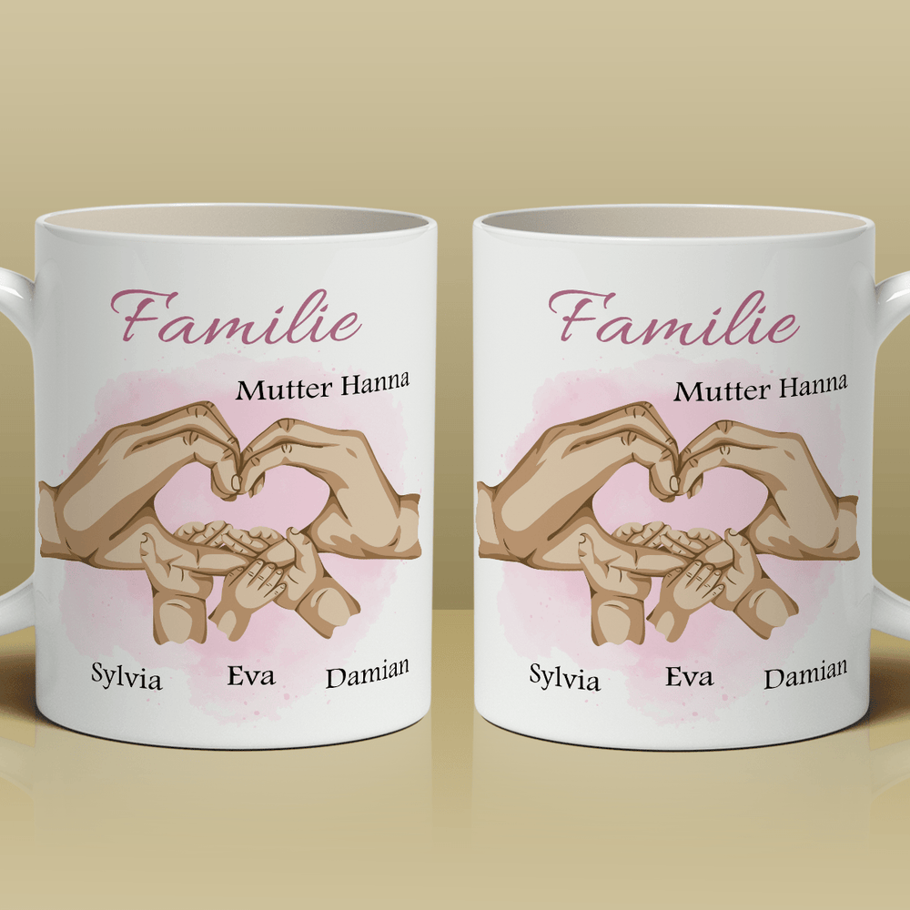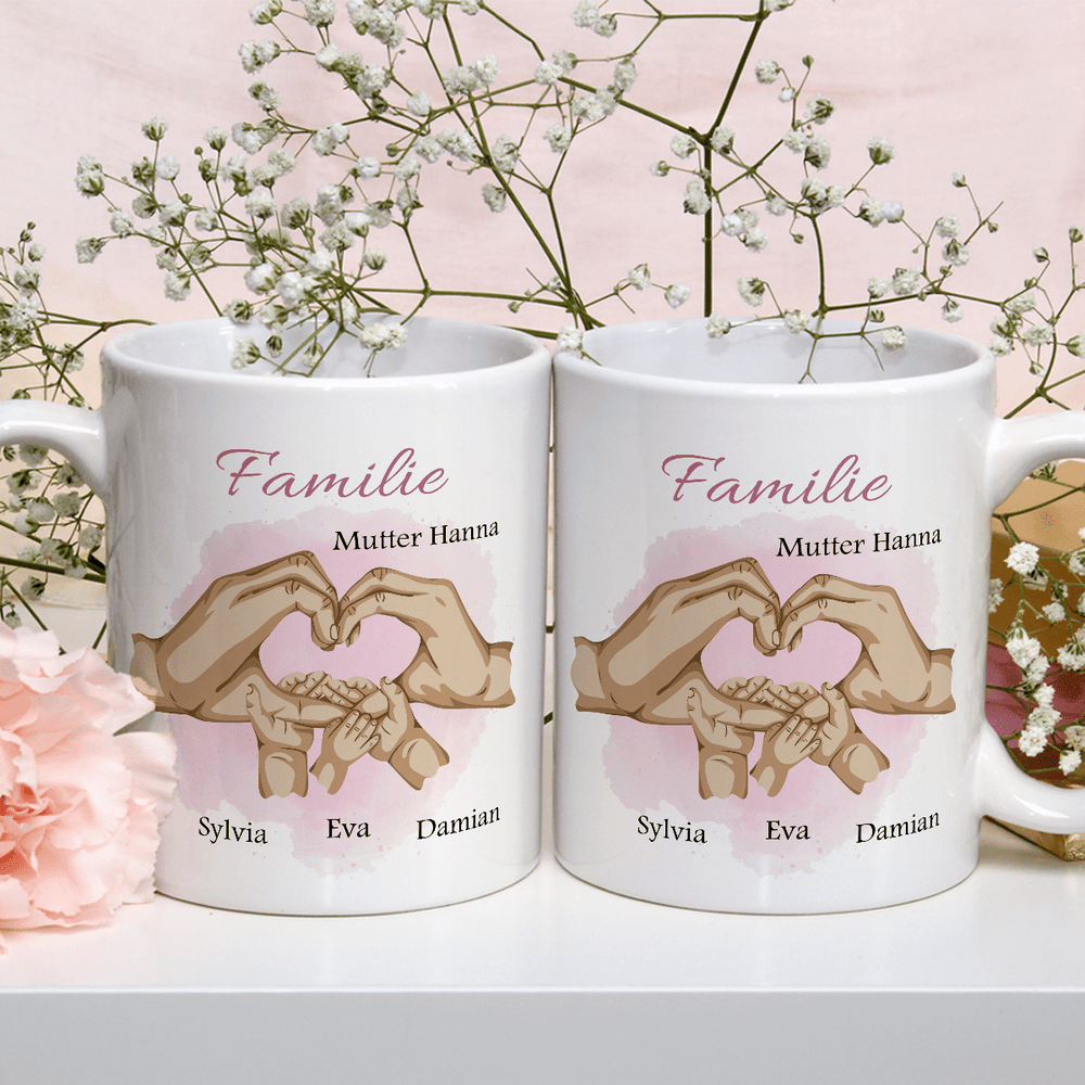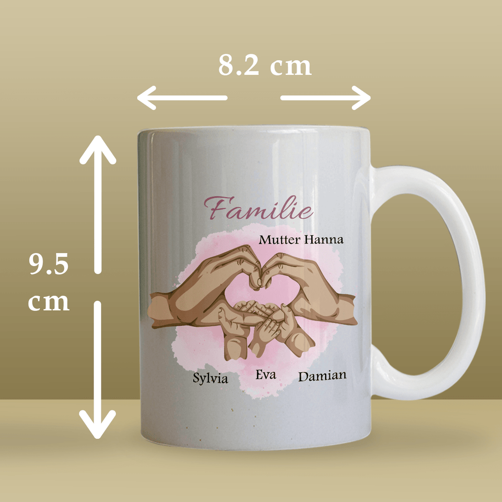 Die Hände der Familie - 1x bedruckte Tasse, personalisiertes Geschenk für Mama