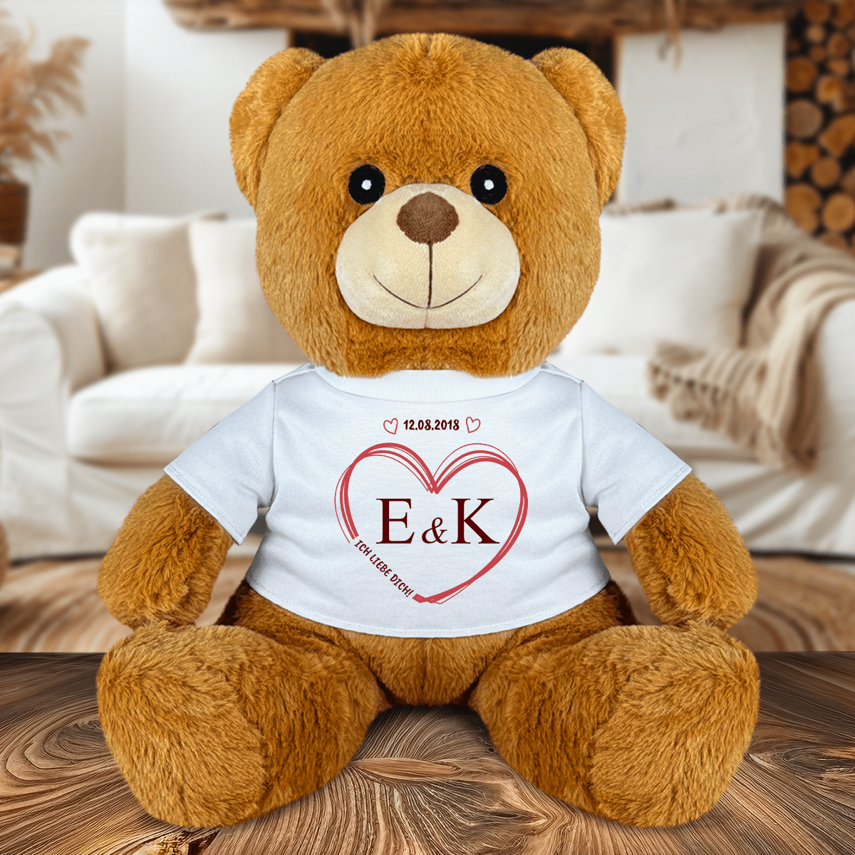 Ein Plüsch-Maskottchen mit personalisiertem T-Shirt ist ein einzigartiges Geschenk, das den Charme eines klassischen Plüsches mit einer persönlichen Note verbindet. Die Maskottchen sind präzise aus hochwertigen Materialien genäht. Dank der sorgfältigen Verarbeitung ist der Teddybär angenehm anzufassen, weich und langlebig. Das Motiv auf dem T-Shirt wird mit einem modernen UV-Druckverfahren erstellt, das sich durch seine Abriebfestigkeit und Verblassung auszeichnet.