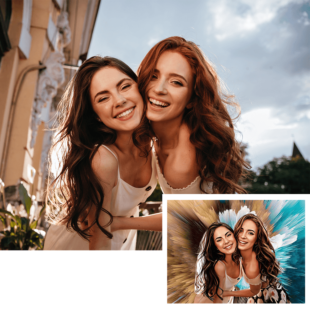 Das von Ihnen eingeschickte Foto wird mit einem zweifarbigen abstrakten Hintergrund ausgearbeitet. Die Vorschaubilder auf der Seite zeigen, welcher grafische Effekt erzielt werden kann.