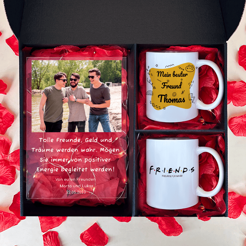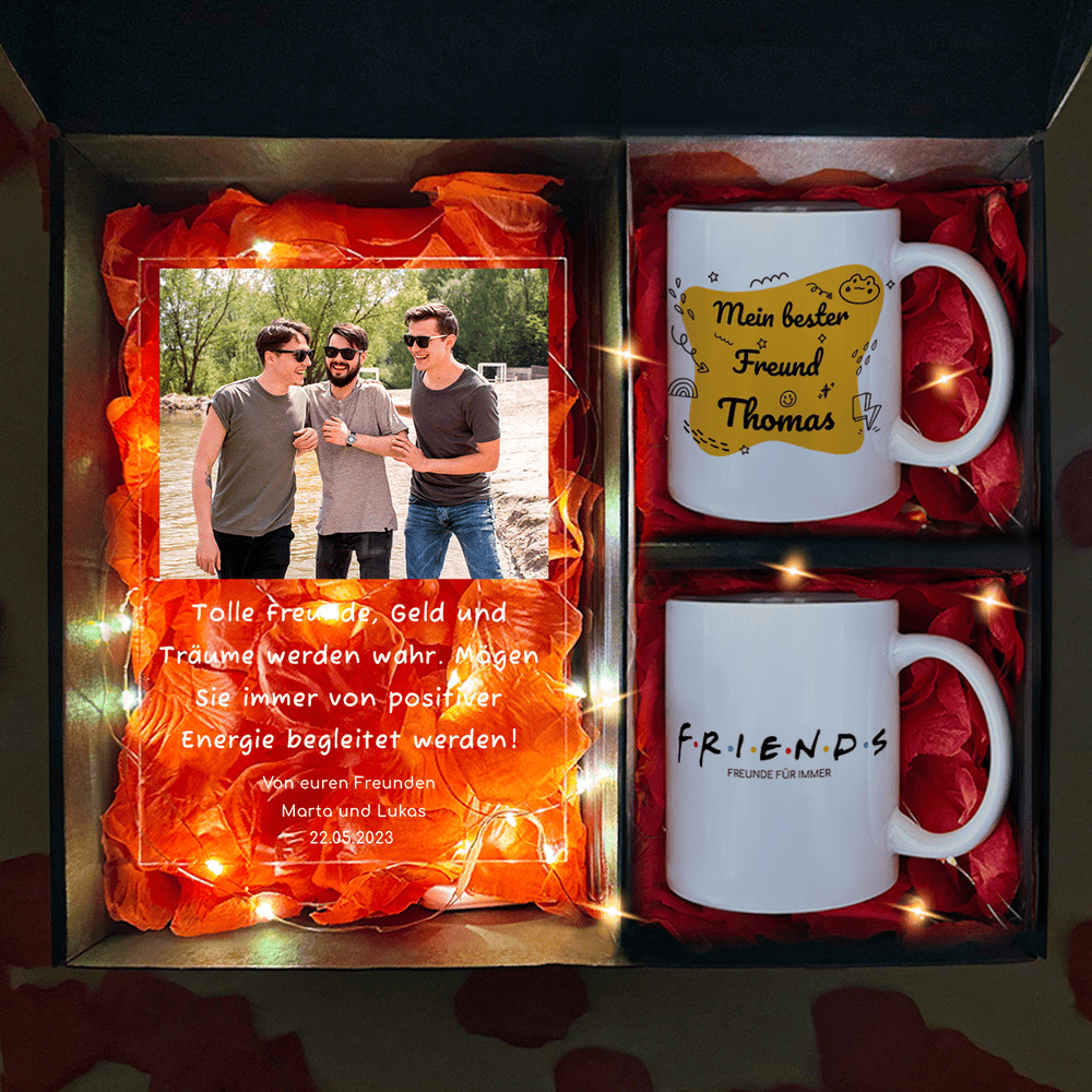 Druck auf Glas + 2 Tassen für Freund MEIN FREUND - Geschenkset 2 w 1, personalisiertes Geschenk für Freund