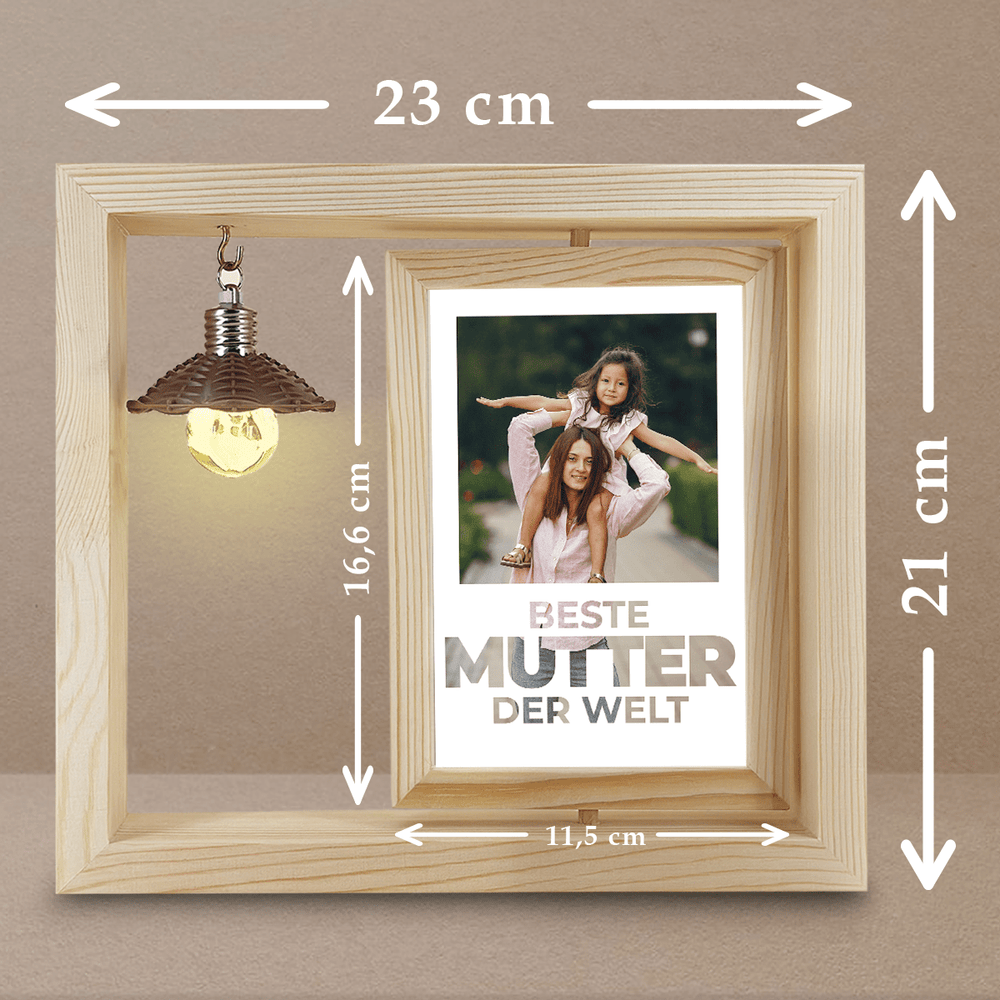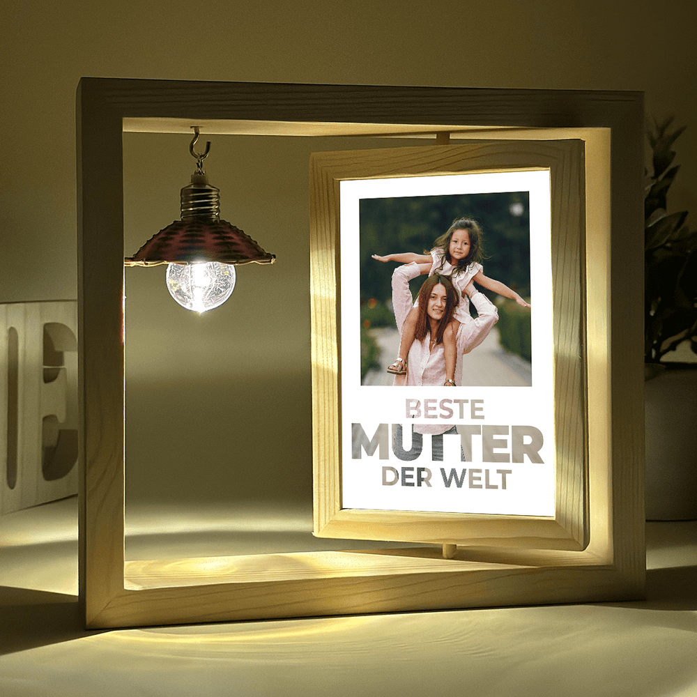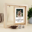 Du bist die beste Mutter der Welt - Druck auf Glas in Holzrahmen + led, personalisiertes Geschenk für Mama
