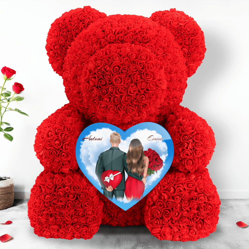 Ein verliebtes Paar - Rosenbären mit Aufdruck, personalisiertes Geschenk für Paare