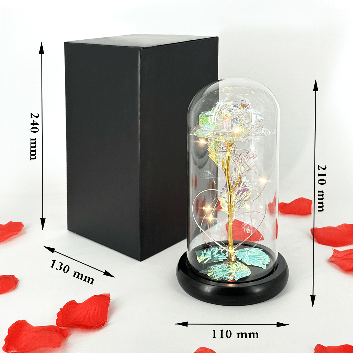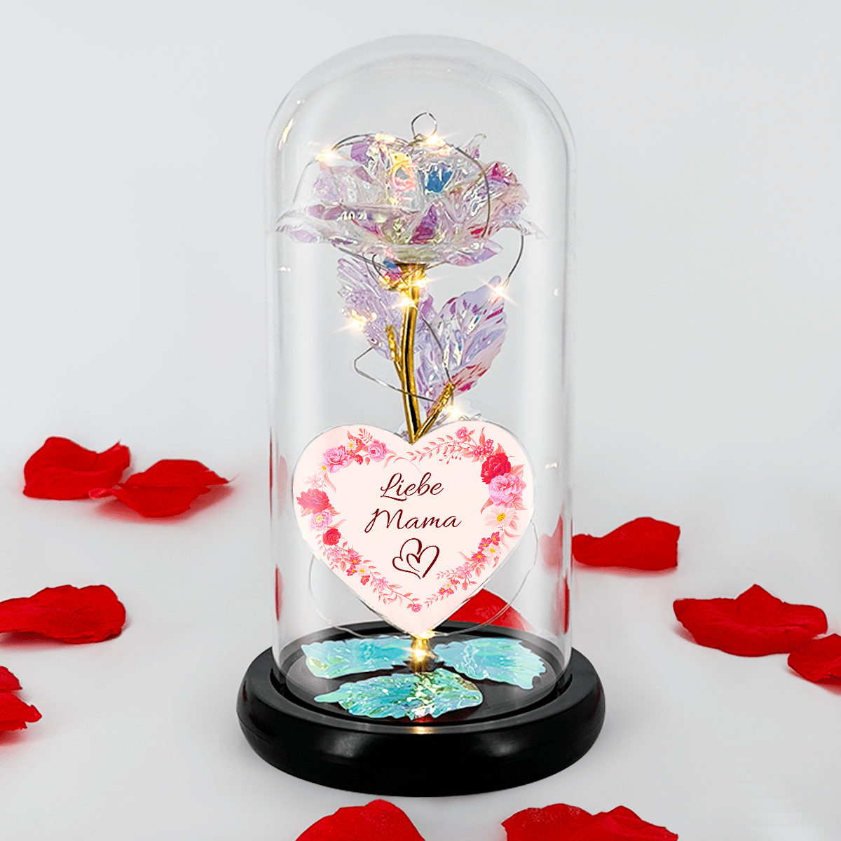 Ewige Rose aus LED-Kristall in Glas + personalisiertes Herz LIEBE MUTTER