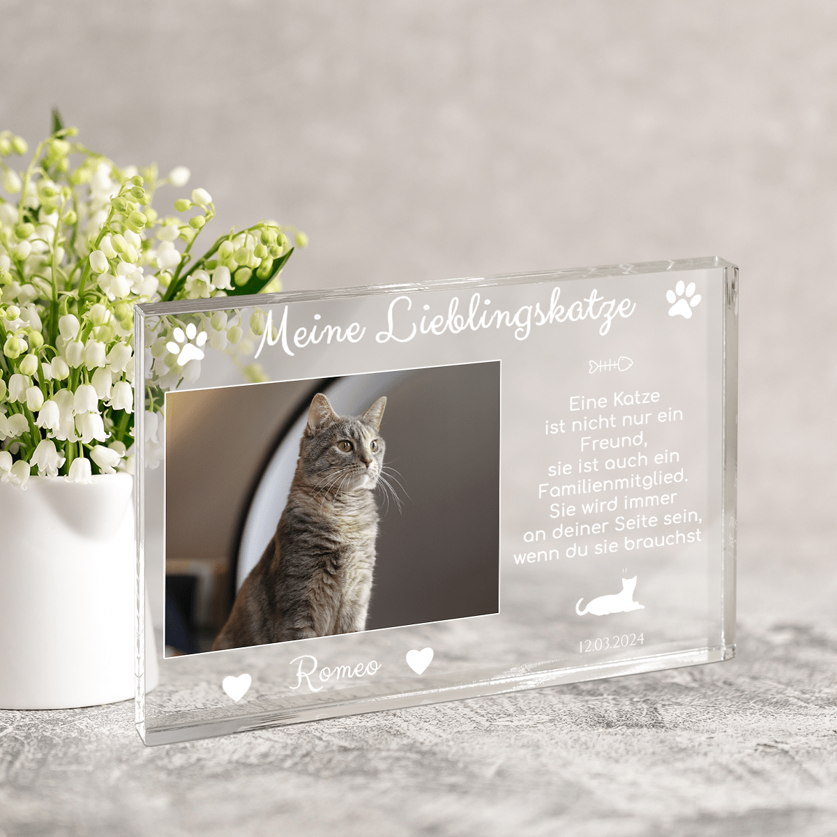 Foto der Katze + Text - Druck auf Glas, personalisiertes Geschenk