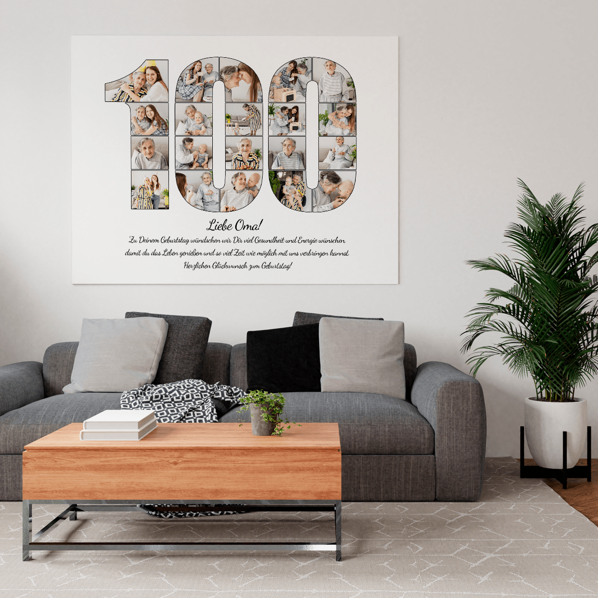 Druck auf Leinwand, personalist Geschenk für sie, Oma, Urgroßmutter, Geschenk zum 100. Geburtstag, Jubiläum, originelle Idee Geburtstagsgeschenk