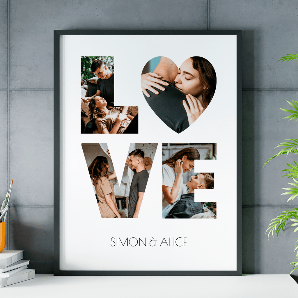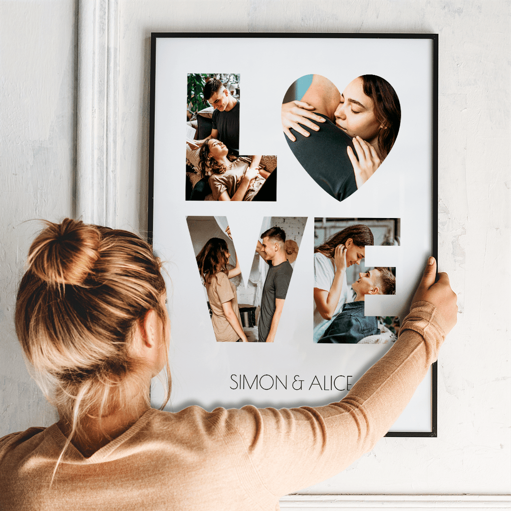 Fotocollage LOVE + Namen - Poster, personalisiertes Geschenk für Frau