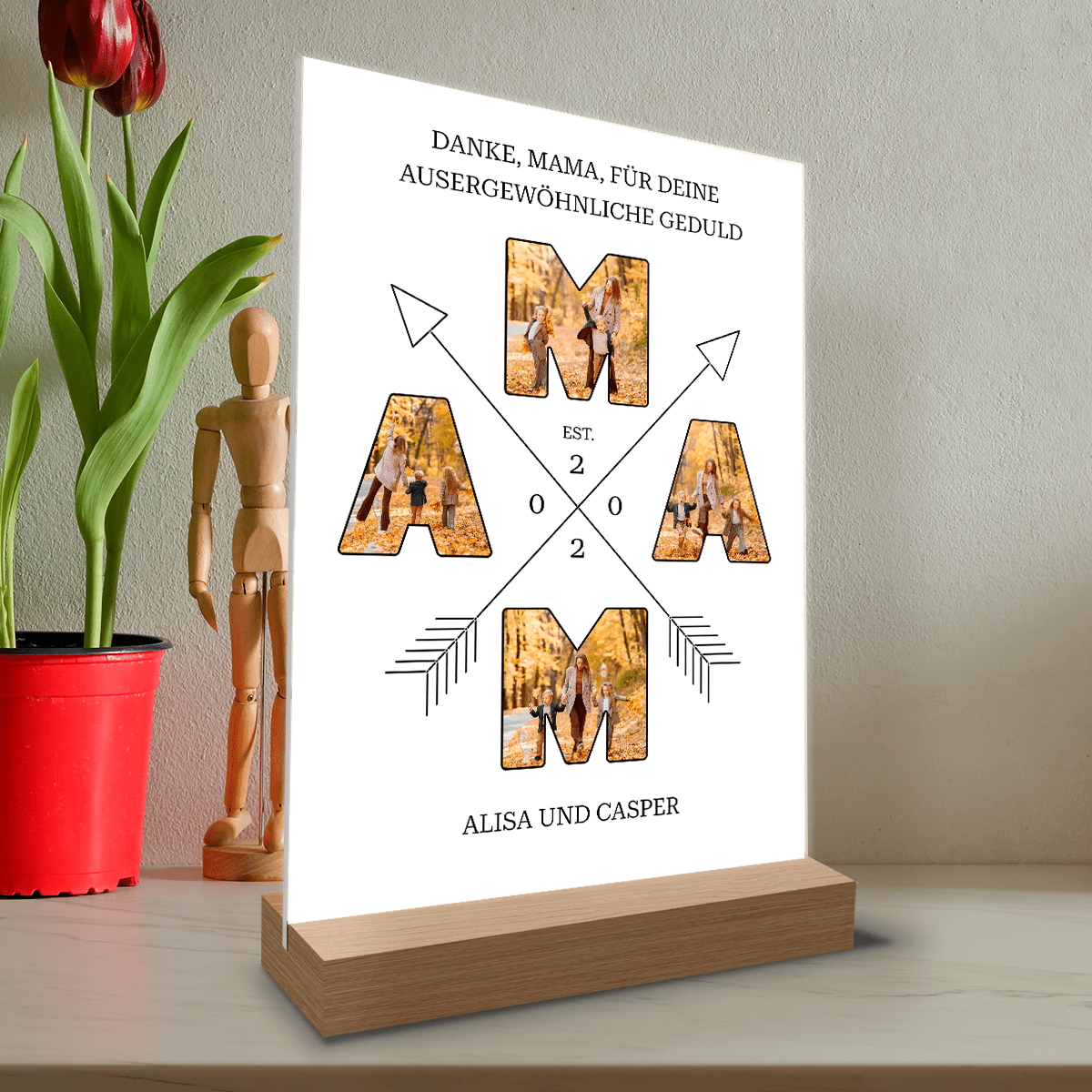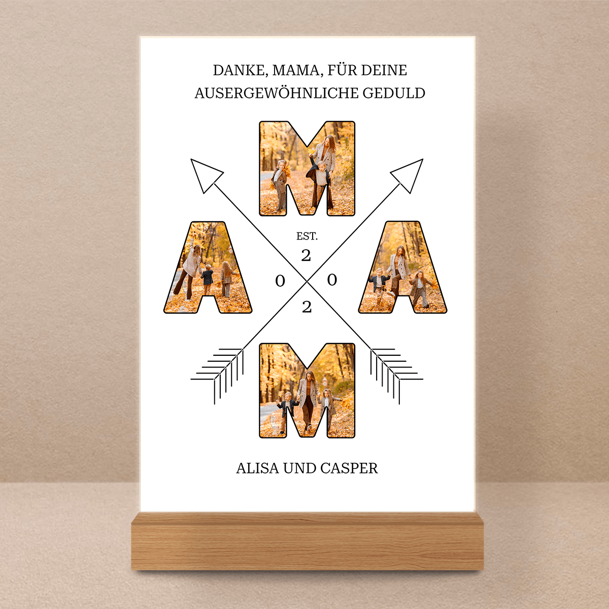 Fotoinschrift MAMA - Druck auf Glas, personalisiertes Geschenk für Mutter