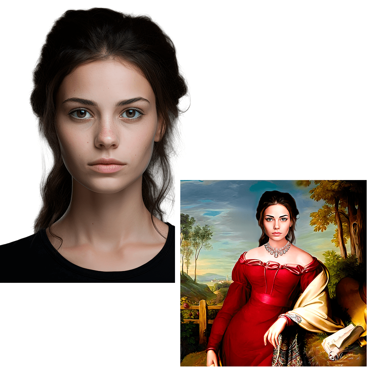 Das von Ihnen eingeschickte Foto wird in einem realistischen Stil mit einem floralen Hintergrund umgearbeitet. Die Vorschaubilder auf der Seite zeigen, welcher grafische Effekt erzielt werden kann.