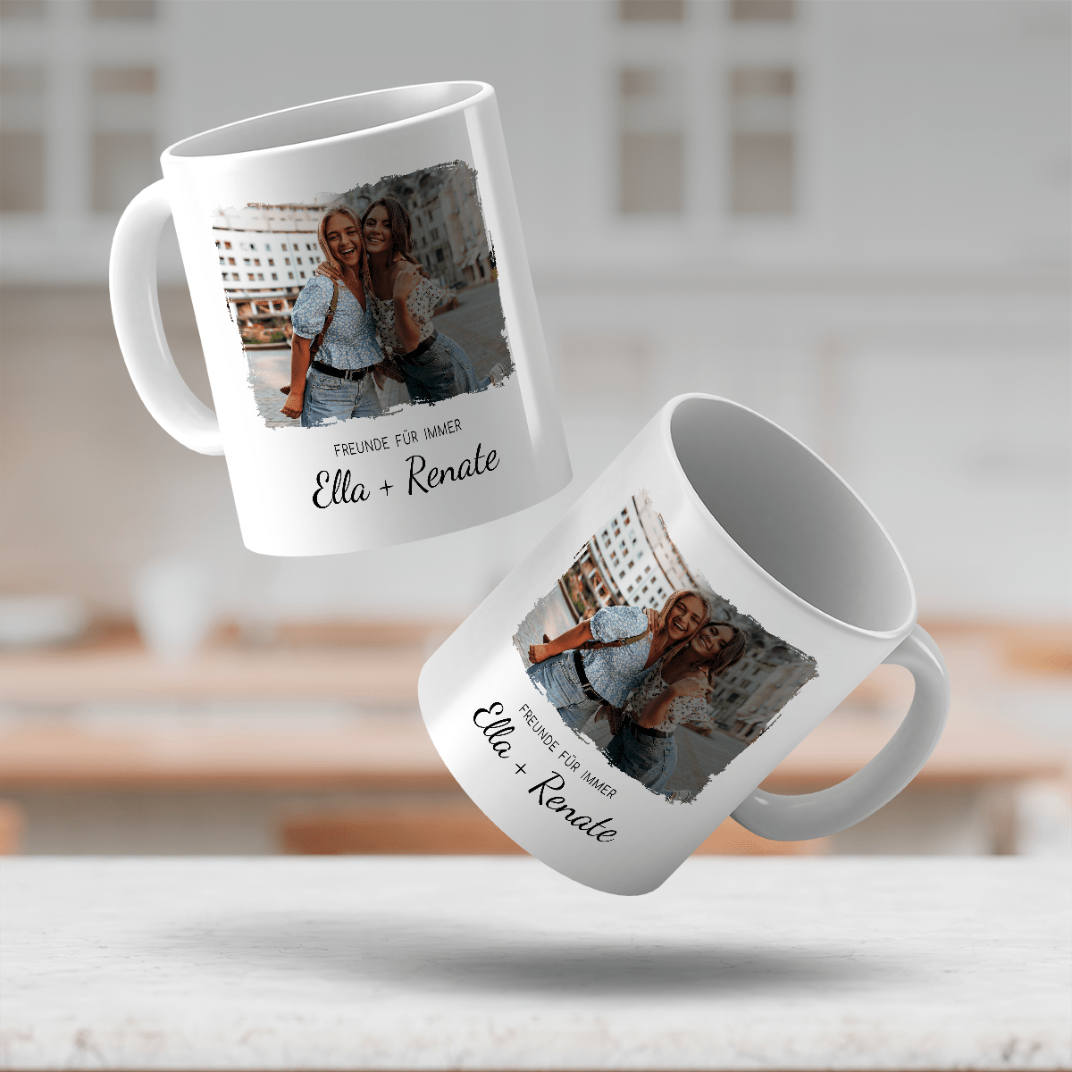 Freunde für immer - 1x Bedruckte Tasse, personalisiertes Geschenk für Freundin