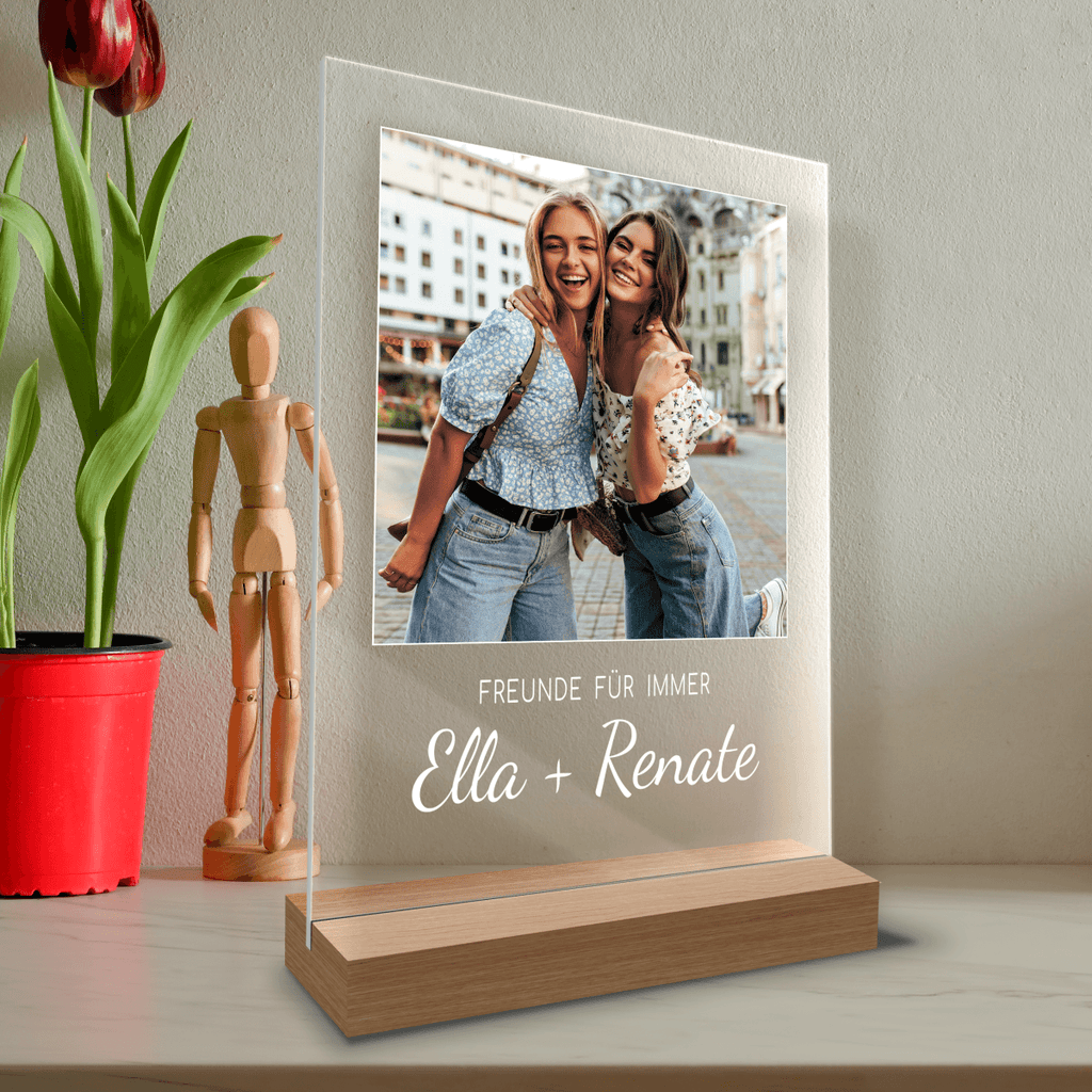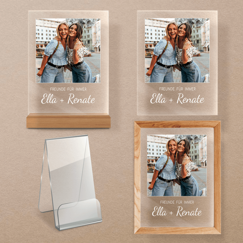 Foto + Namen Freunde für immer - Druck auf Glas, personalisiertes Geschenk für Freundin