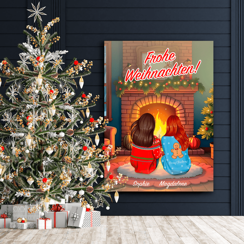 Freundinnen am Kamin Clipart - Druck auf Leinwand, personalisiertes Geschenk für Freundin