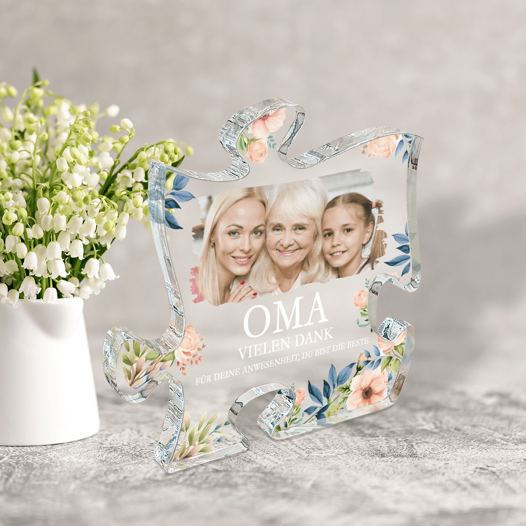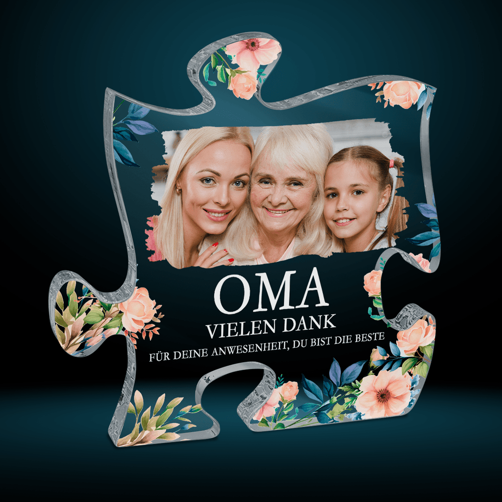 Druck auf Glas, Acrylpuzzle, personalisiertes Geschenk für Oma, Geschenk zum 60., 70. Geburtstag, Omatag, Geschenkidee für Oma, originelles Geschenk