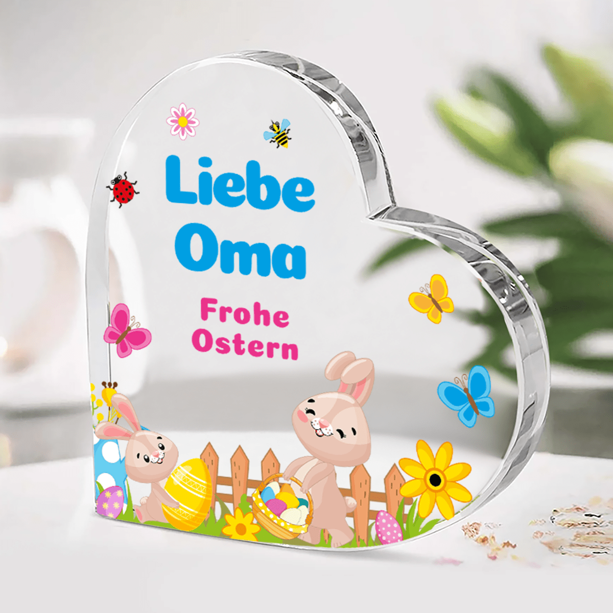 Herz aus Glas, personalisiertes Geschenk für Oma, Großmutter, Familie, Ostergeschenk, Geschenk zu Ostern, Geschenkidee, originelle Osterwünsche