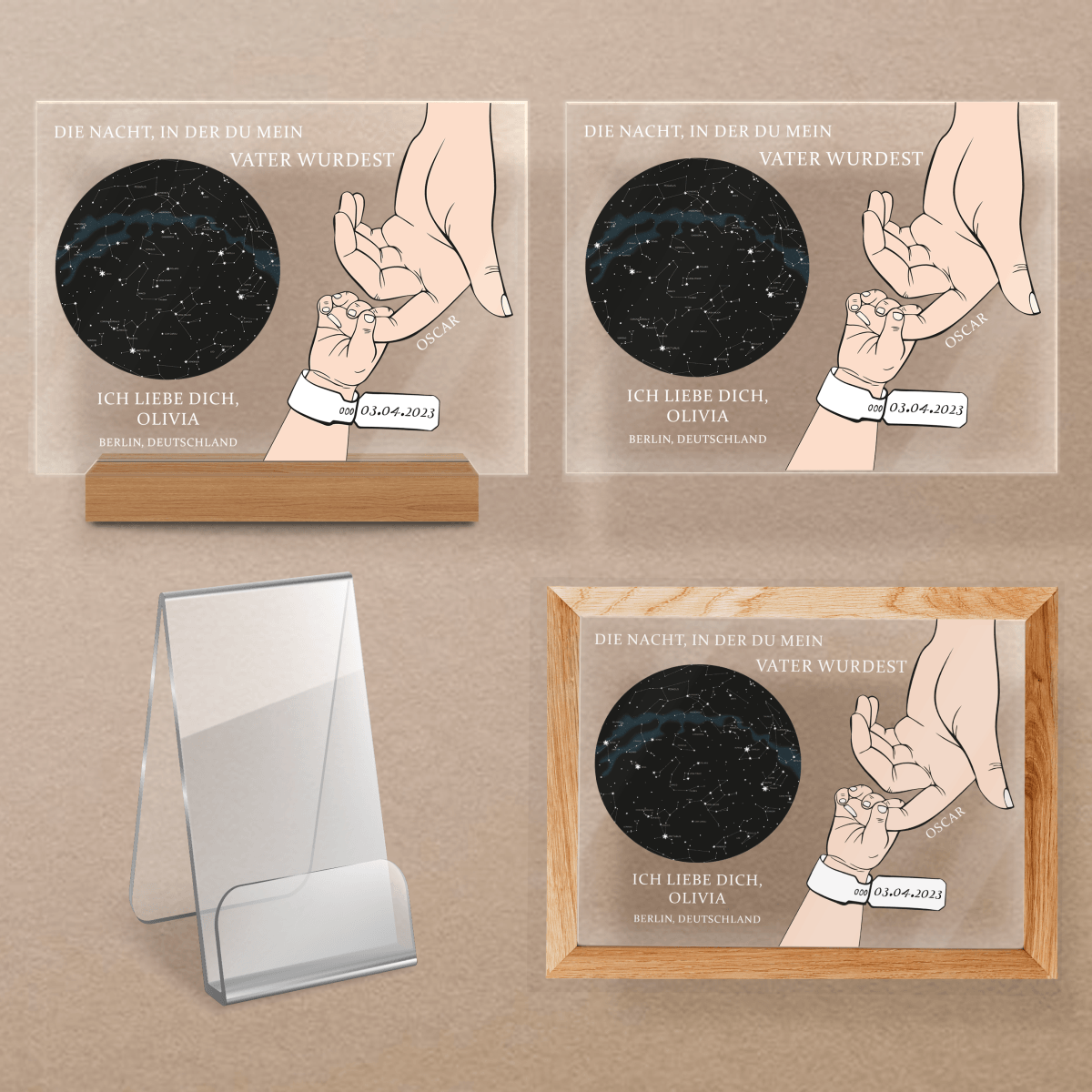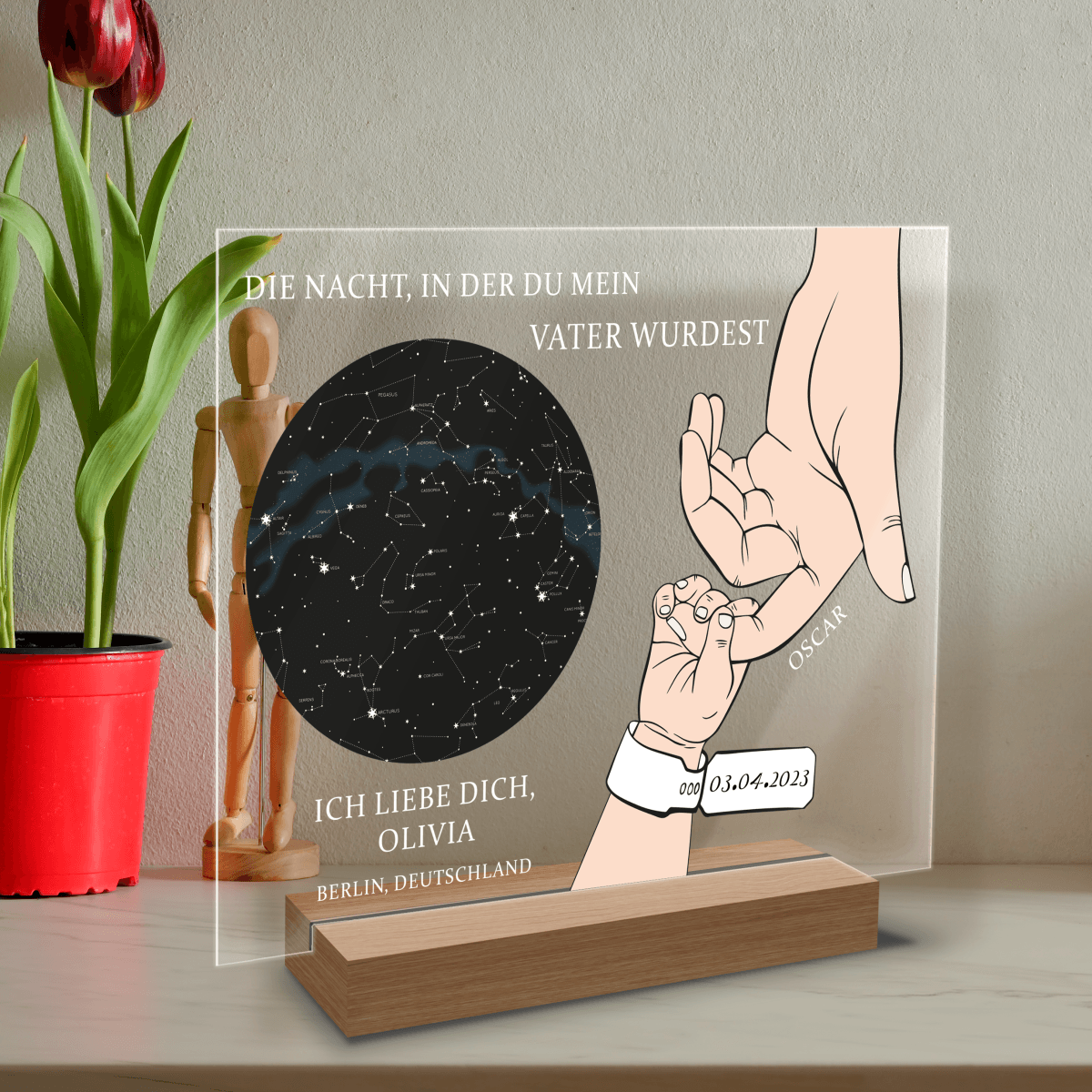 Geburtserinnerung mit Sternenkarte - Druck auf Glas, personalisiertes Geschenk für Papa