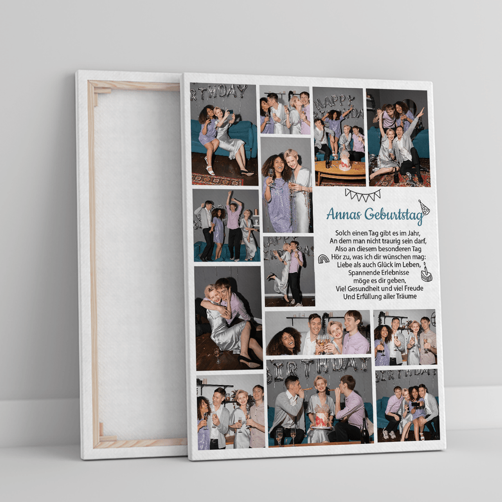 Geburtstag Collage + Text - Druck auf Leinwand, personalisiertes Geschenk zum Geburtstag
