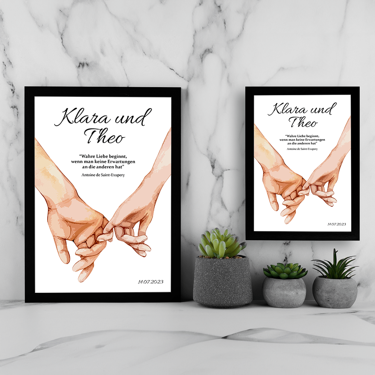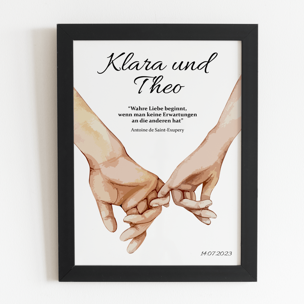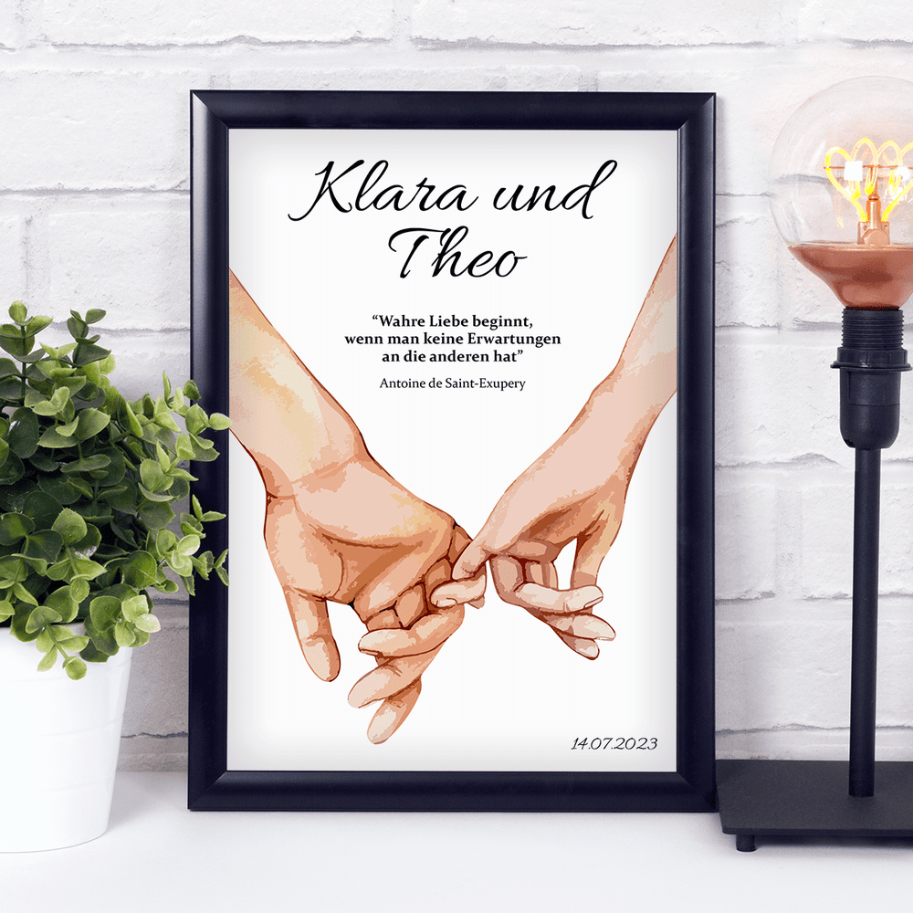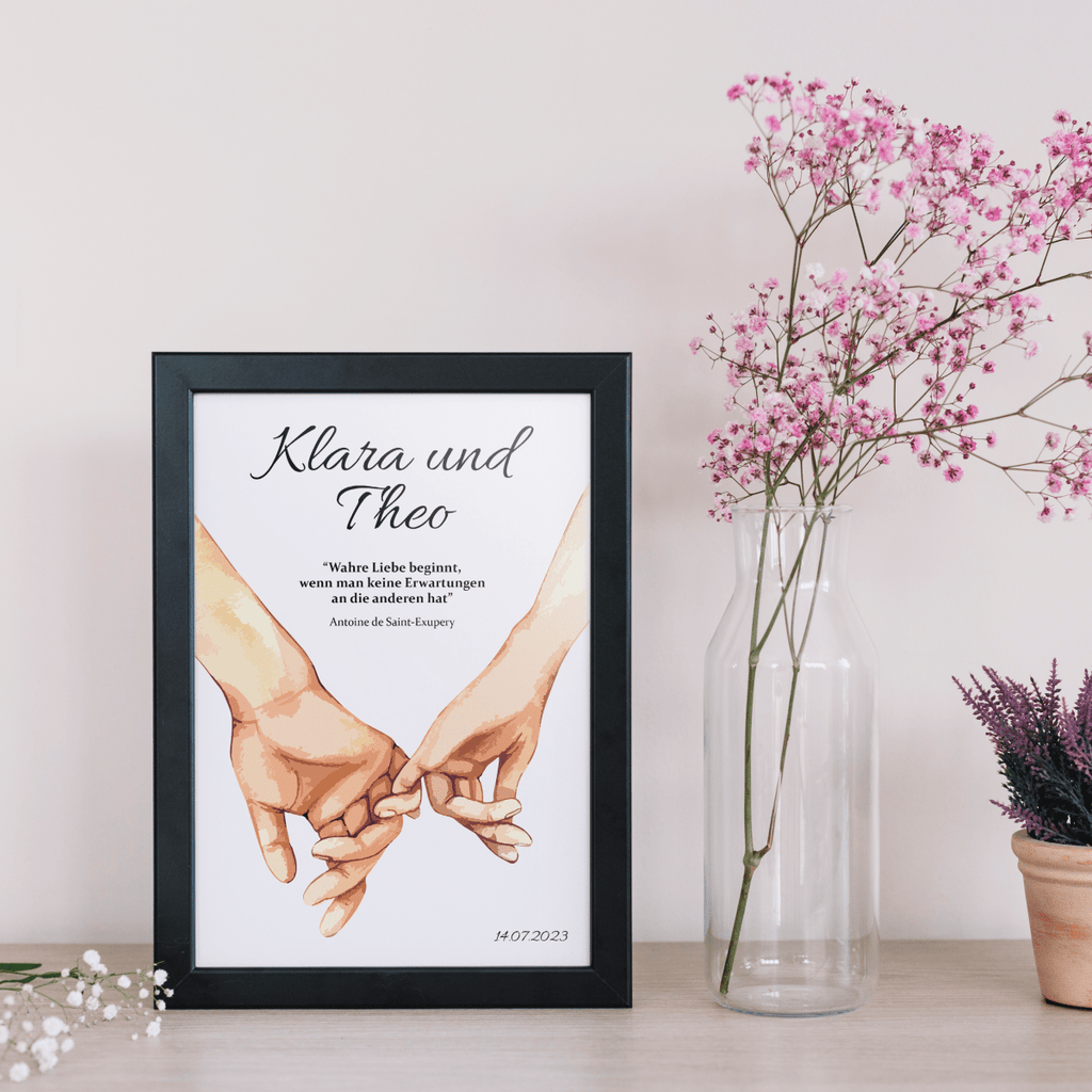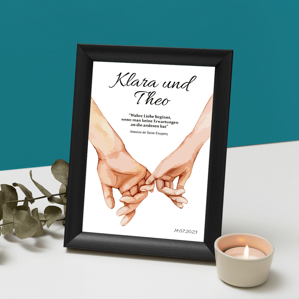 Gefaltete Hände - Druck auf Glas, personalisiertes Geschenk für Paar