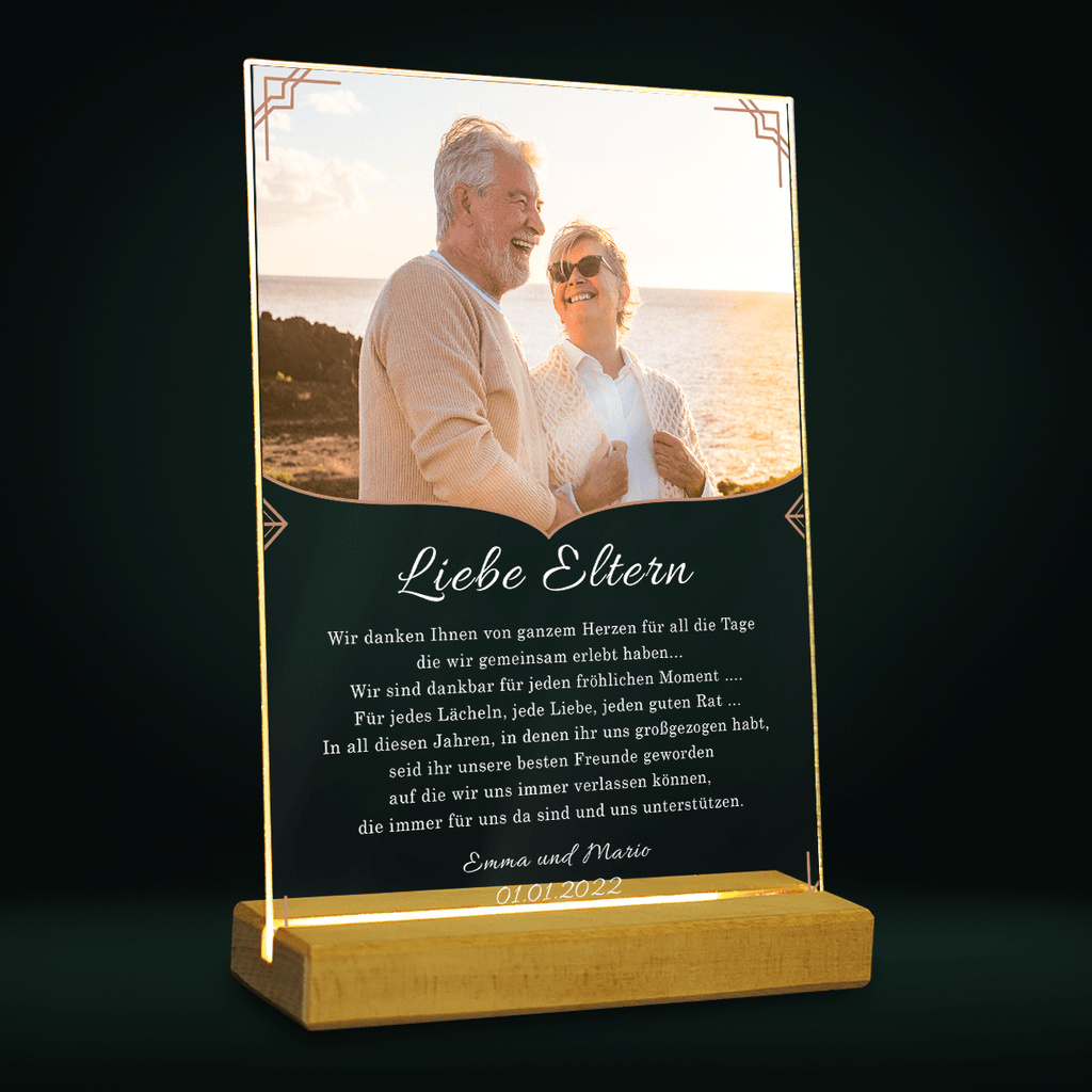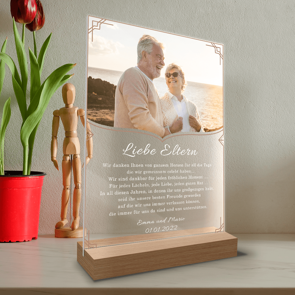 Geliebte Eltern - Druck auf Glas, personalisiertes Geschenk für Eltern